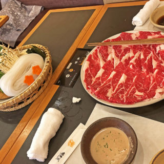 卓上調味料はGABANのブラックペッパー、白胡麻、酢、そしておろしニンニク、豆板醤、おろし生姜です。