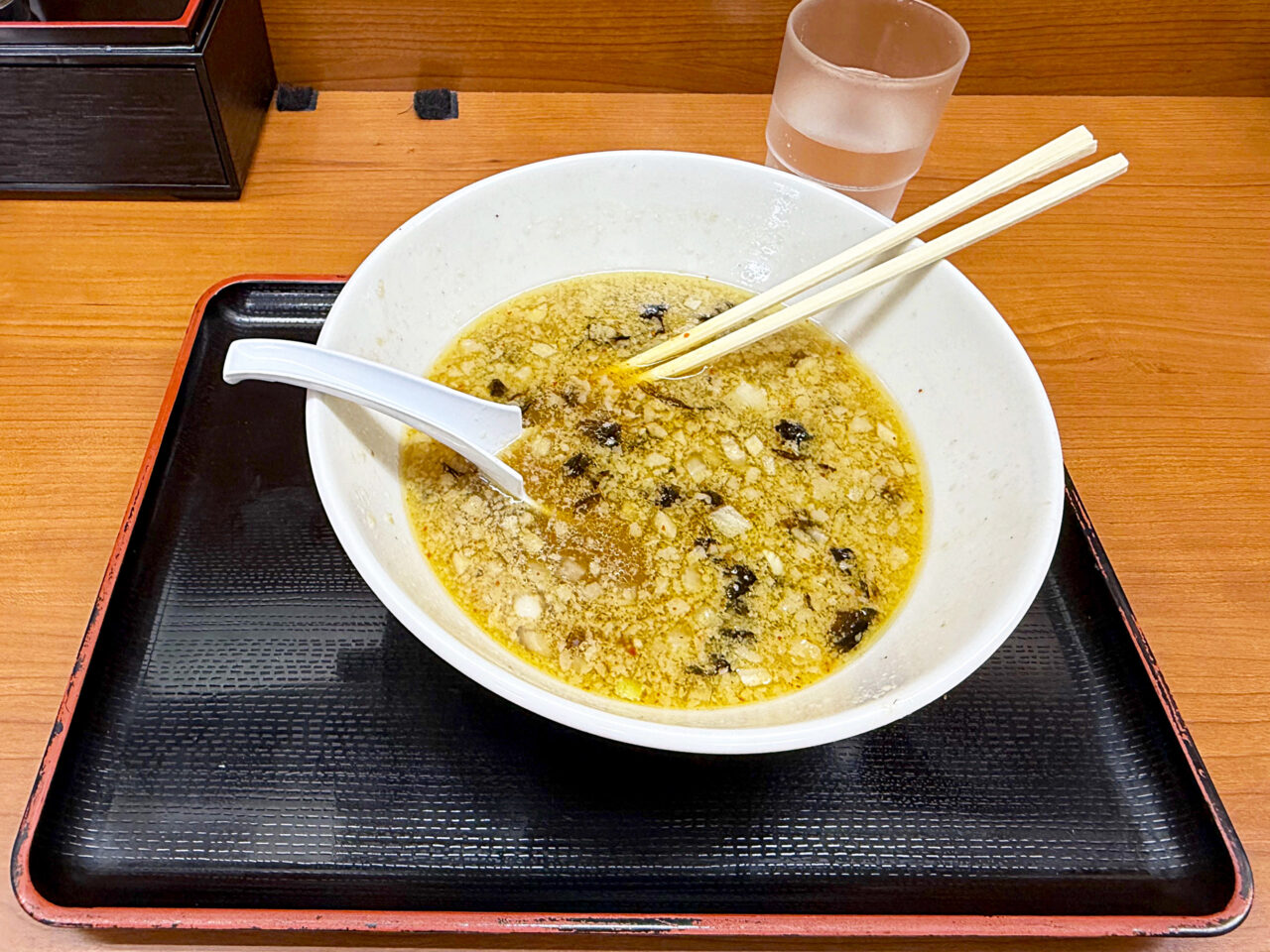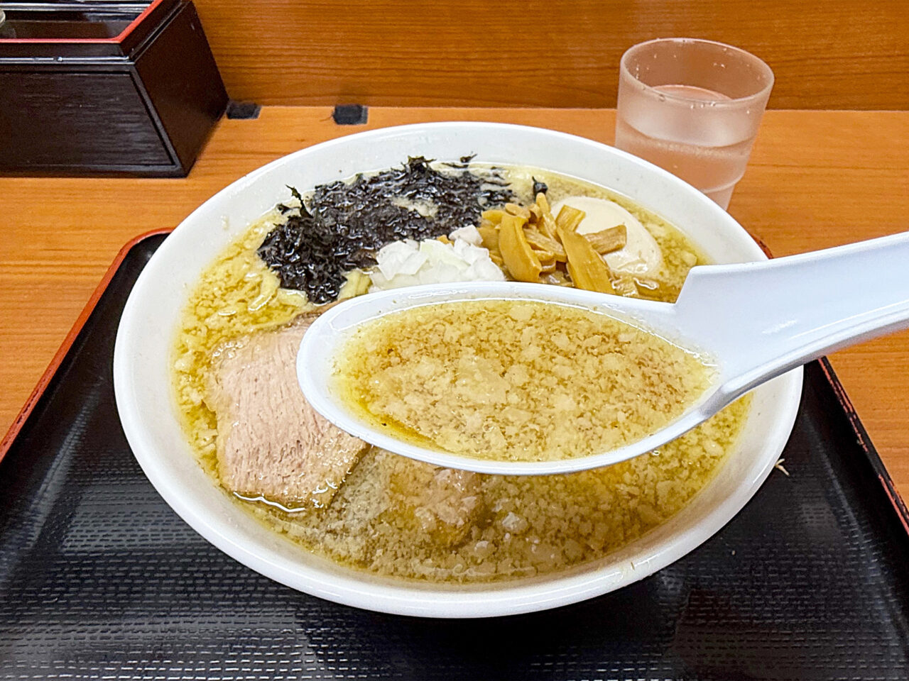 パリパリ感と風味を味わい、スープに溶けた海苔の味を満喫出来ます。