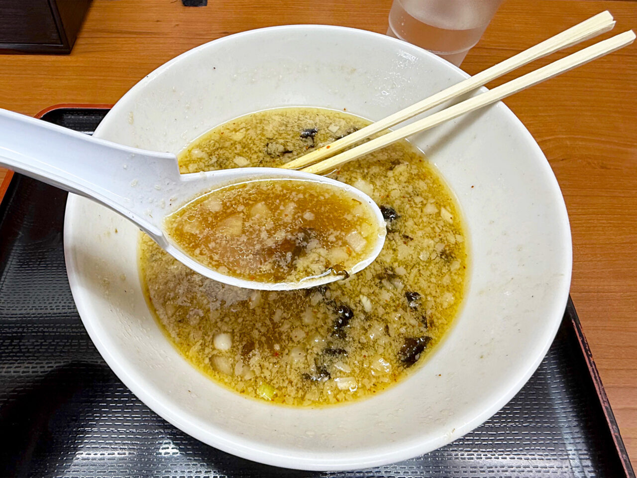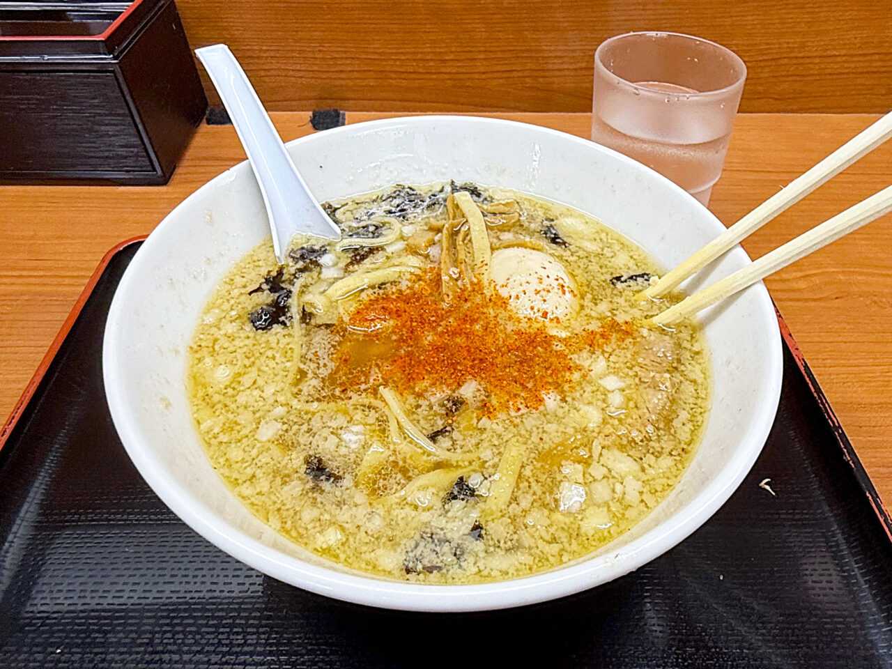 一味の辛味が背脂煮干のスープととても良く合っていて美味しいです。