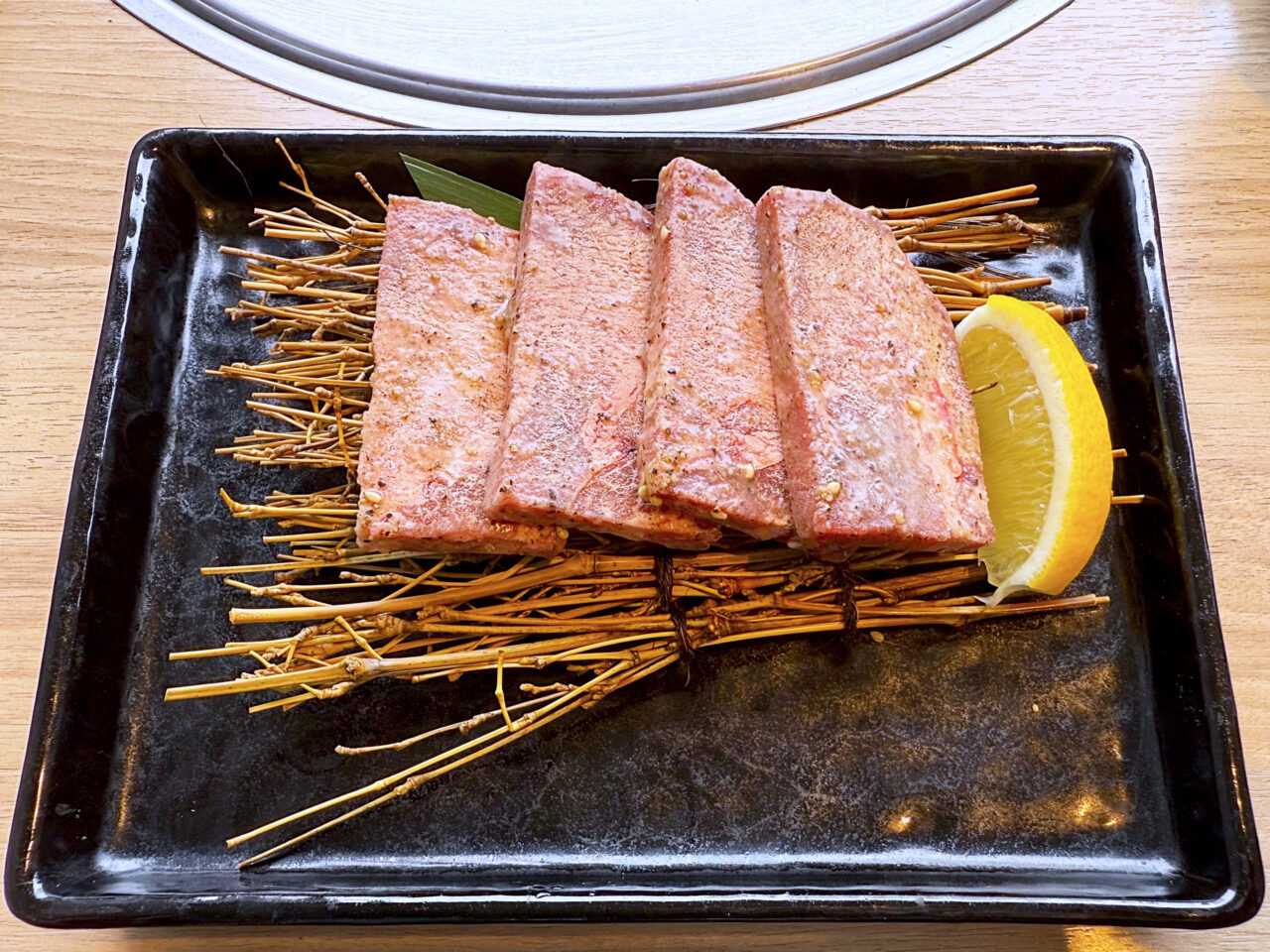 ちょっと厚切りの塩ダレのタンにレモンが付いて来ます。