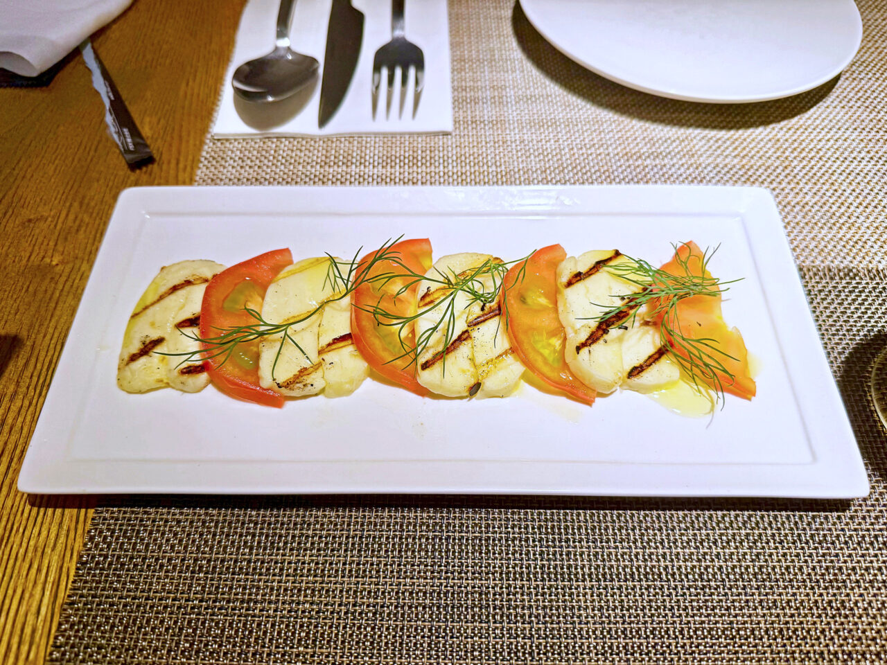 見た感じは焼きチーズを使った「カプレーゼ」の様な感じです。