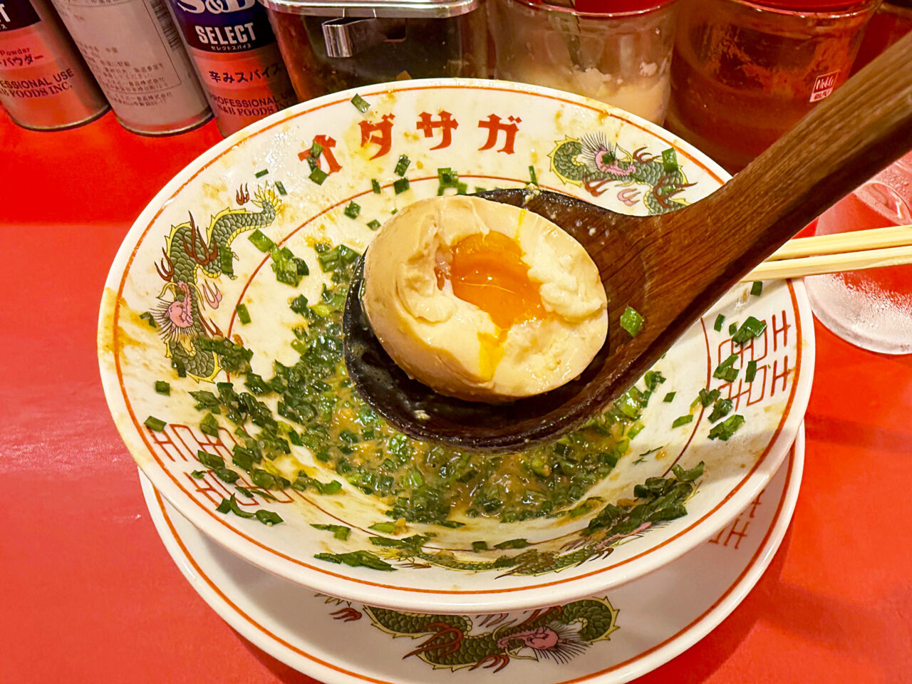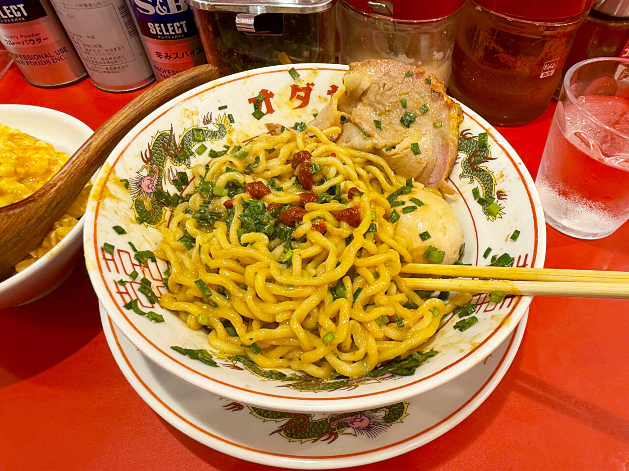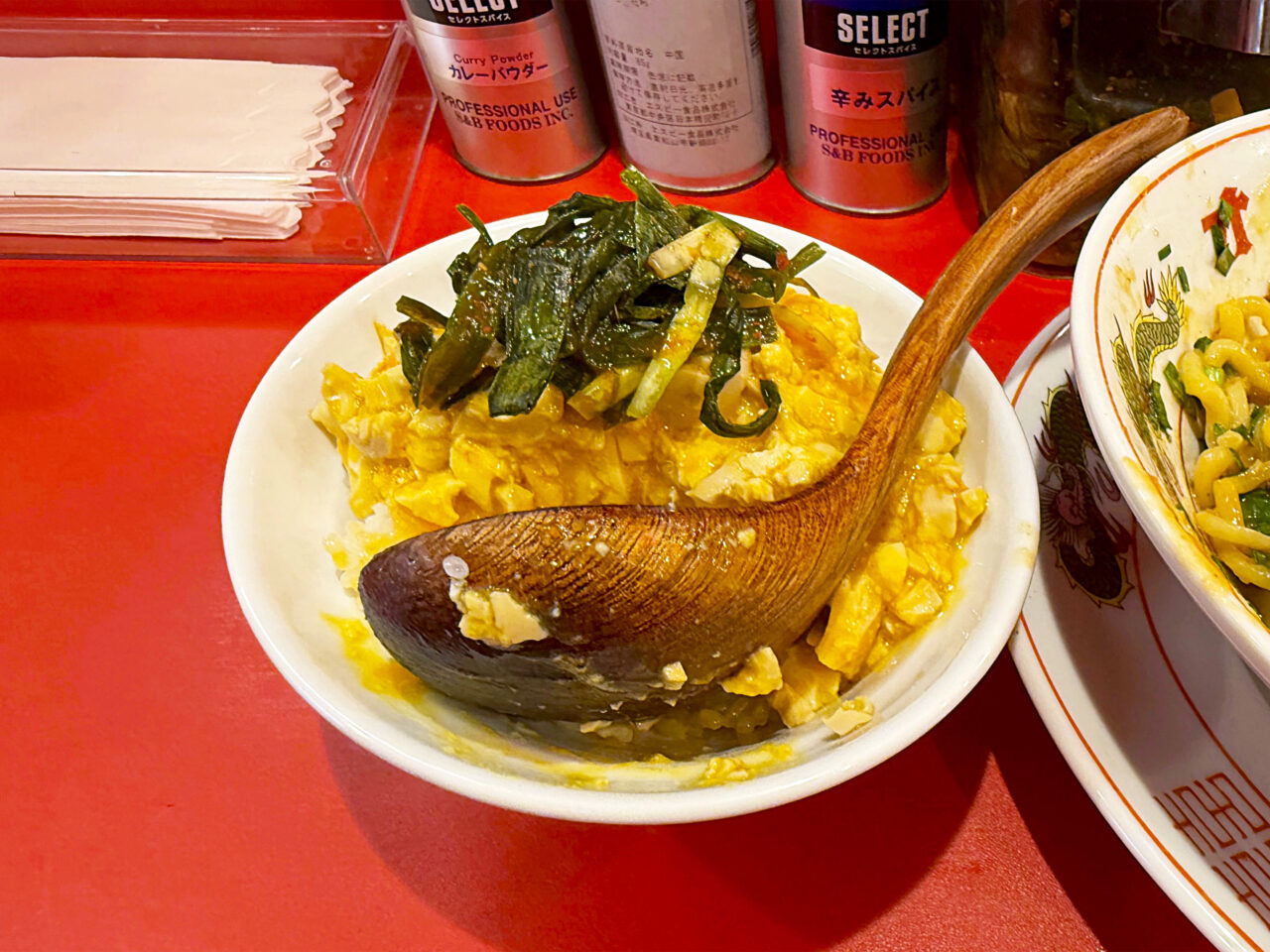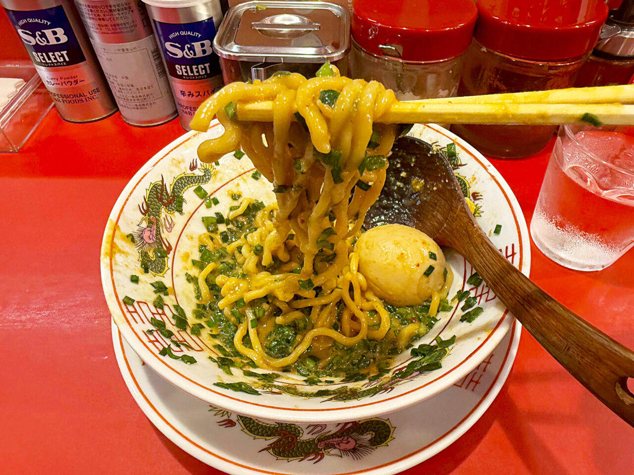 うっかり味玉を足してしまいましたが、良く考えたら「ニラ味噌まぜそば」には卵黄が載っています。
