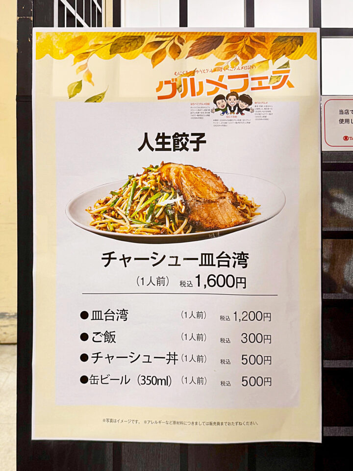 エンターテイメント性と味をしっかり両立した「人生餃子」さんの名物「チャーシュー皿台湾」を味わえてとても良かったです。