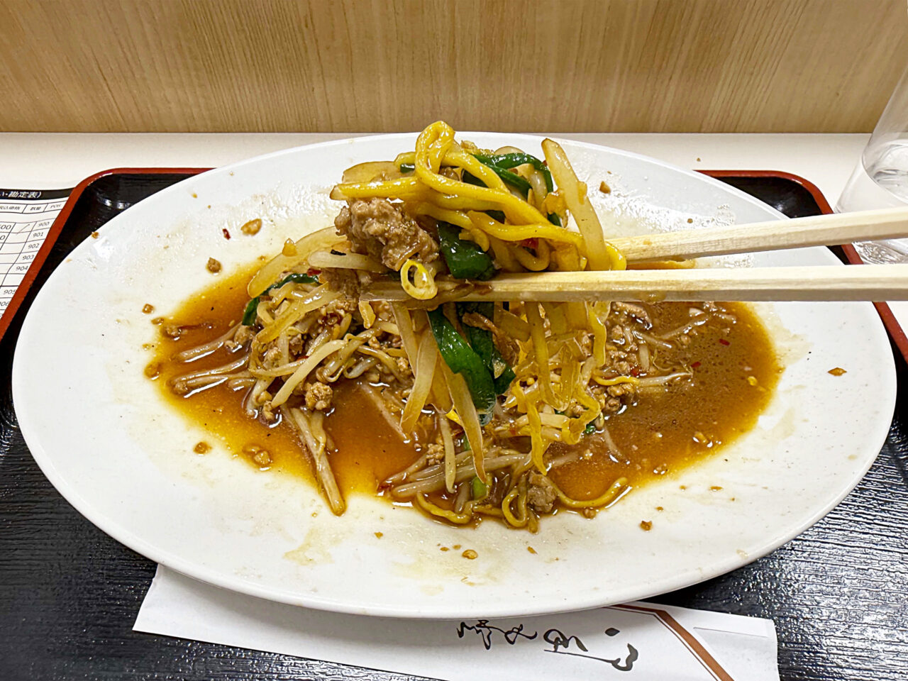 挽肉とモヤシとニラも絶妙な炒め加減です。