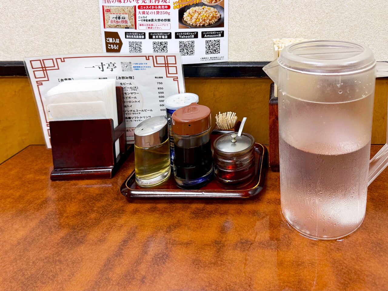 卓上調味料は胡椒・お酢・醤油・ラー油です。