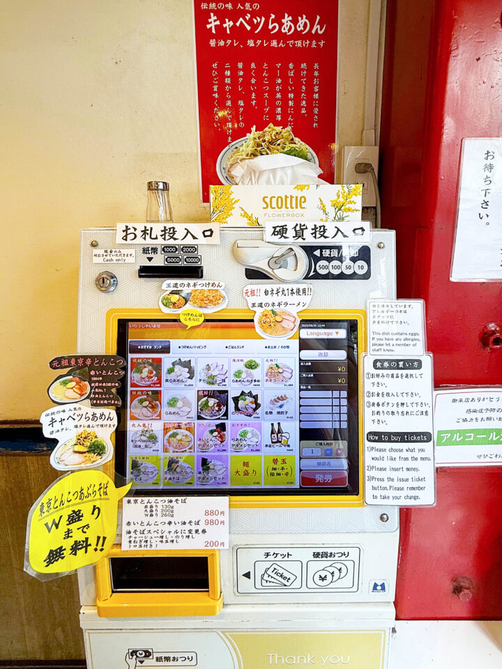 1番人気は左上の「赤いとんこつめん」の様ですが、壁の「キャベツらあめん」が気になりました。