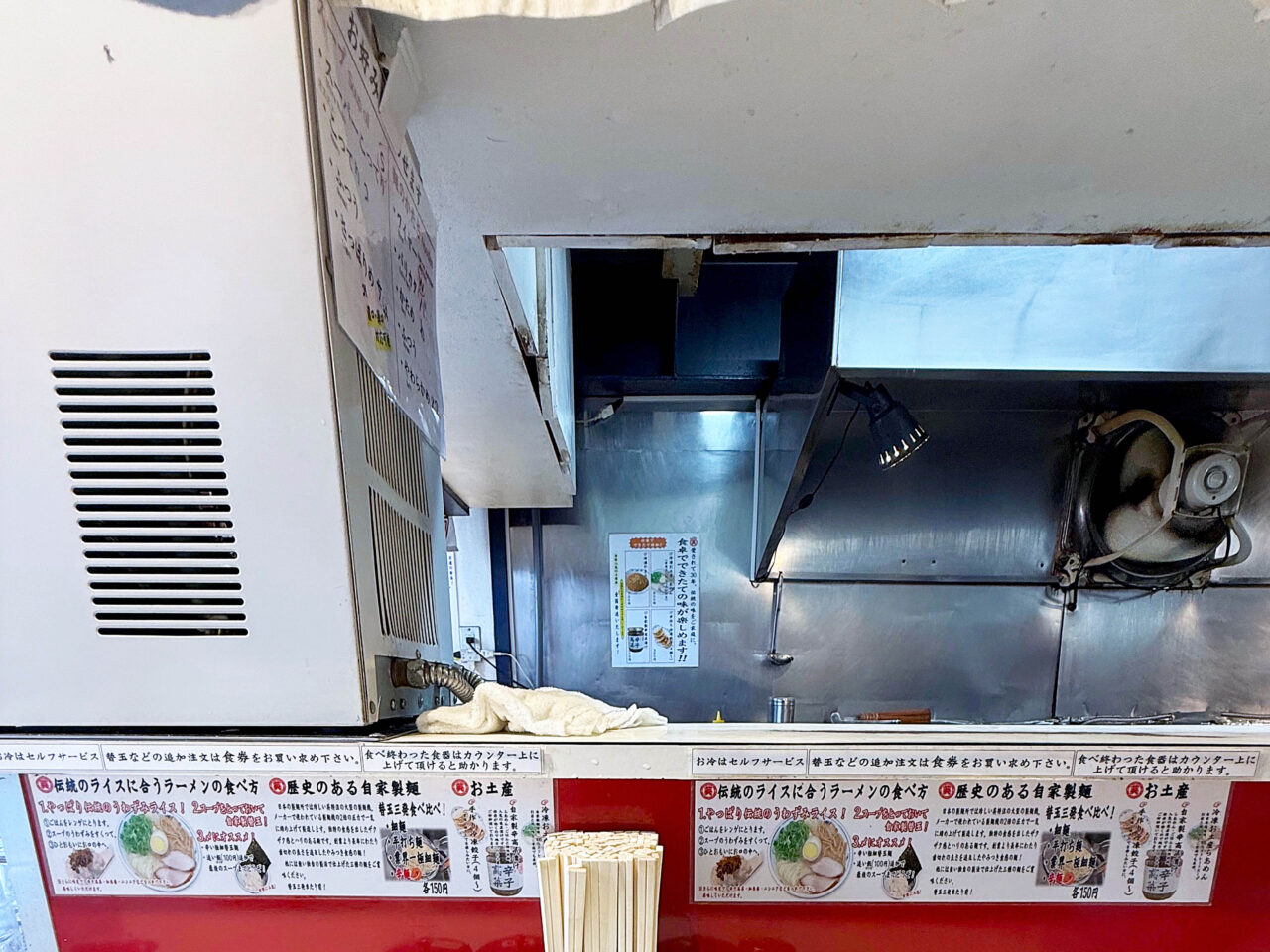 カウンターには「伝統のライスに合うラーメンの食べ方」や自家製麺やお土産の説明が有ります。