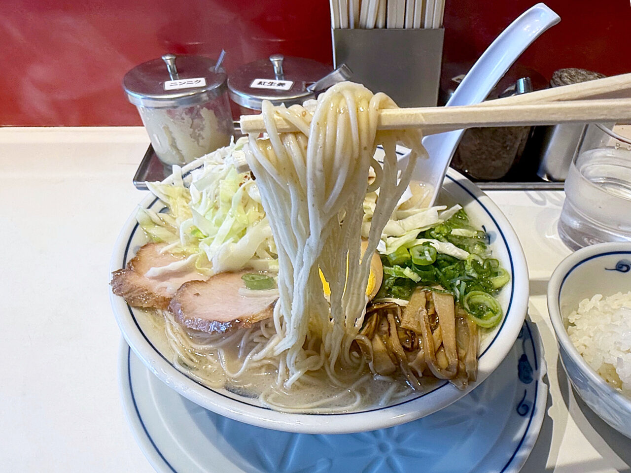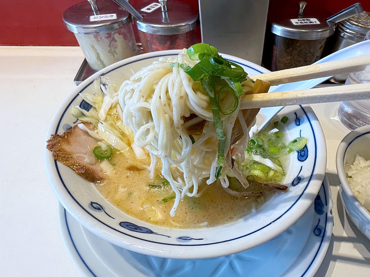 サッパリ系のとんこつスープにネギがとても良く合います。
