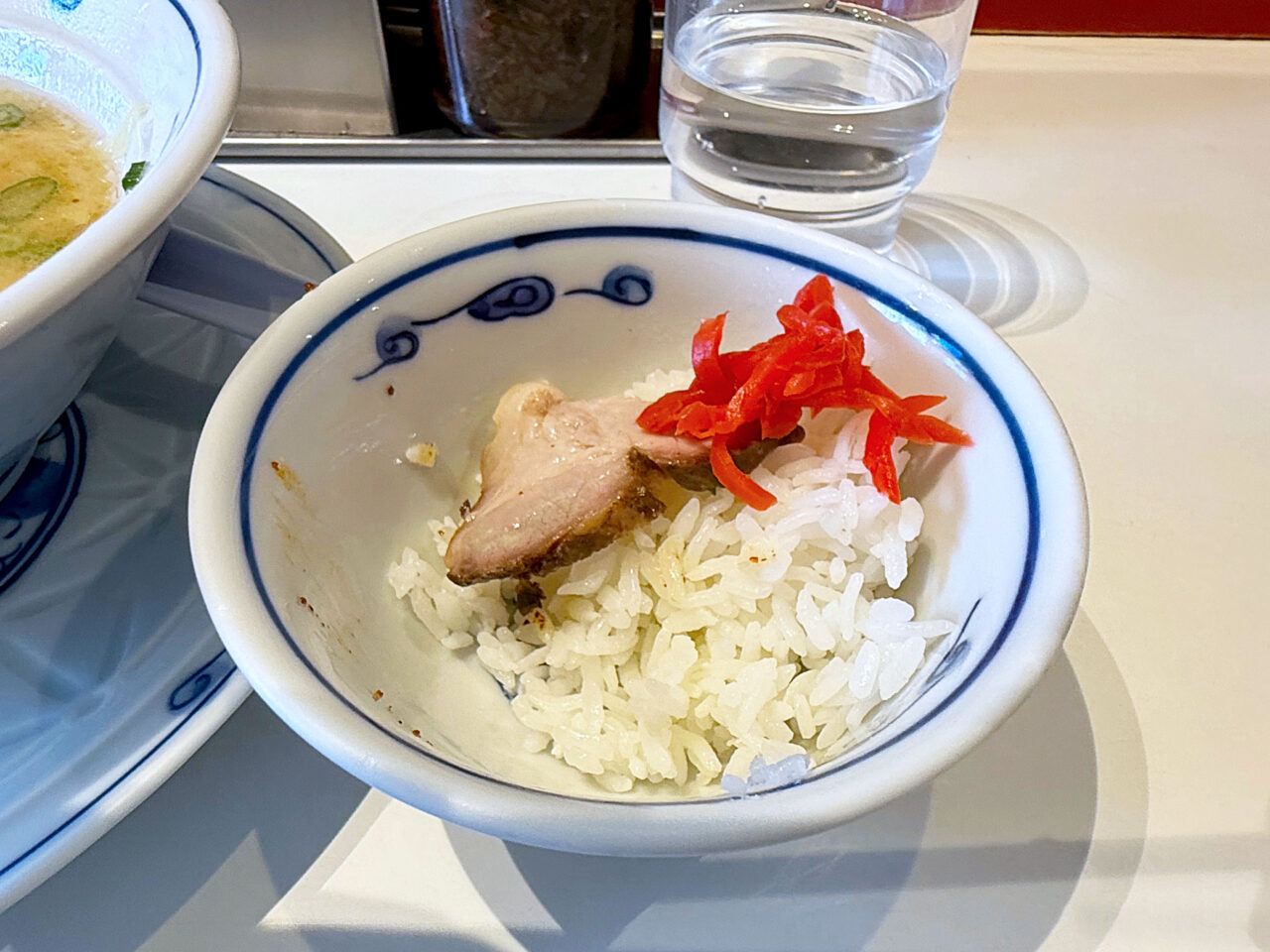 チャーシューと紅生姜を半ライスに載せてミニ丼に。