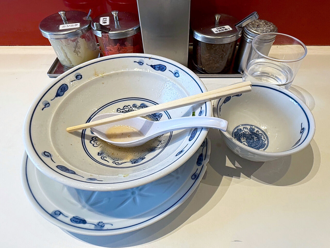 途中で入れた辛子高菜のピリリとした辛さや紅生姜の爽やかな風味も有って絶品です。