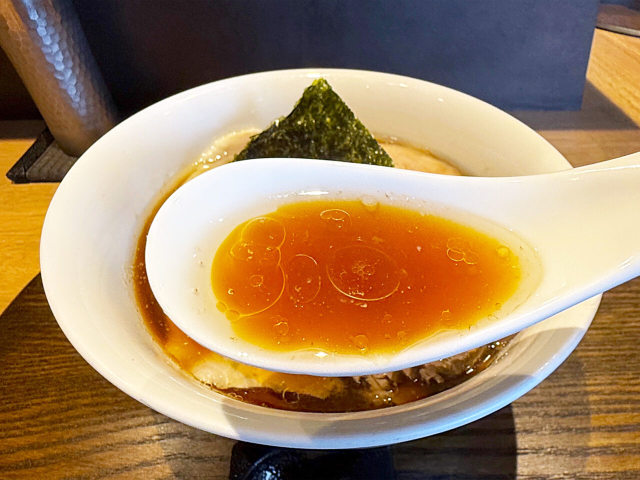 濃いめの醤油と芳醇なスープの香りが素晴らしいです。