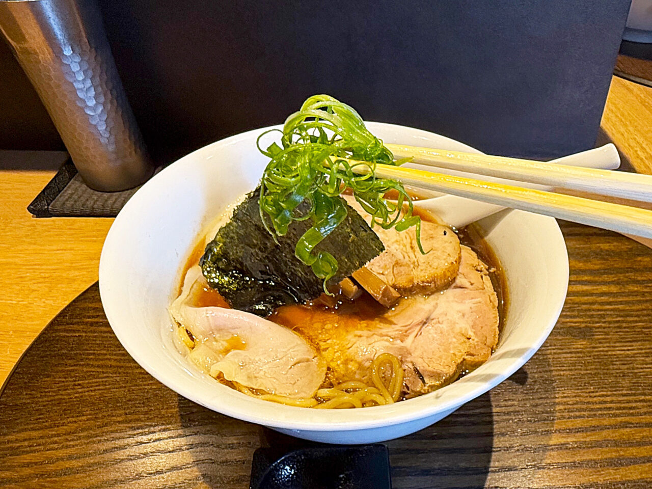 たっぷりのネギと香ばしく炙られたチャーシューが載っています。