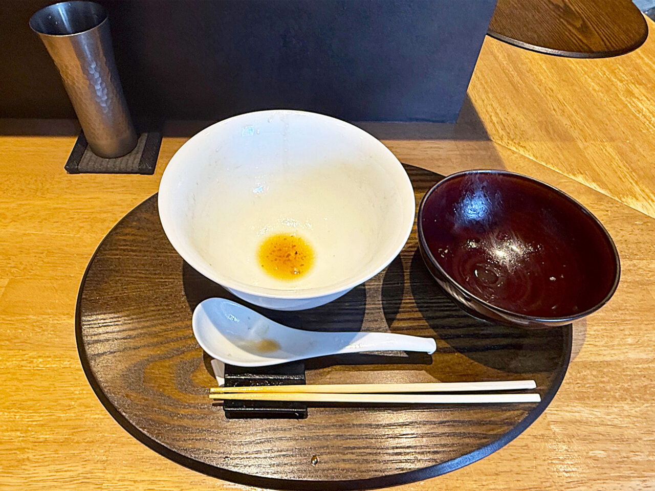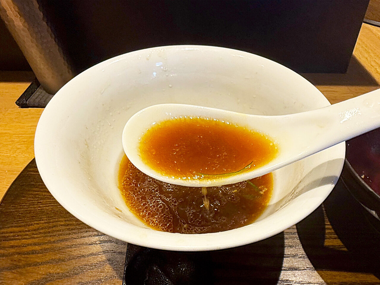 麺と具を食べ終えて、スープを味わいます。