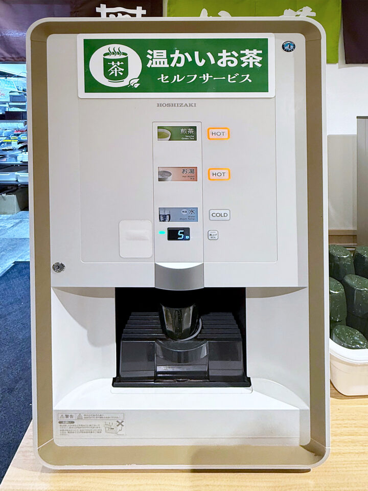 給茶機横の湯呑みを取って、お茶を注ぎます。