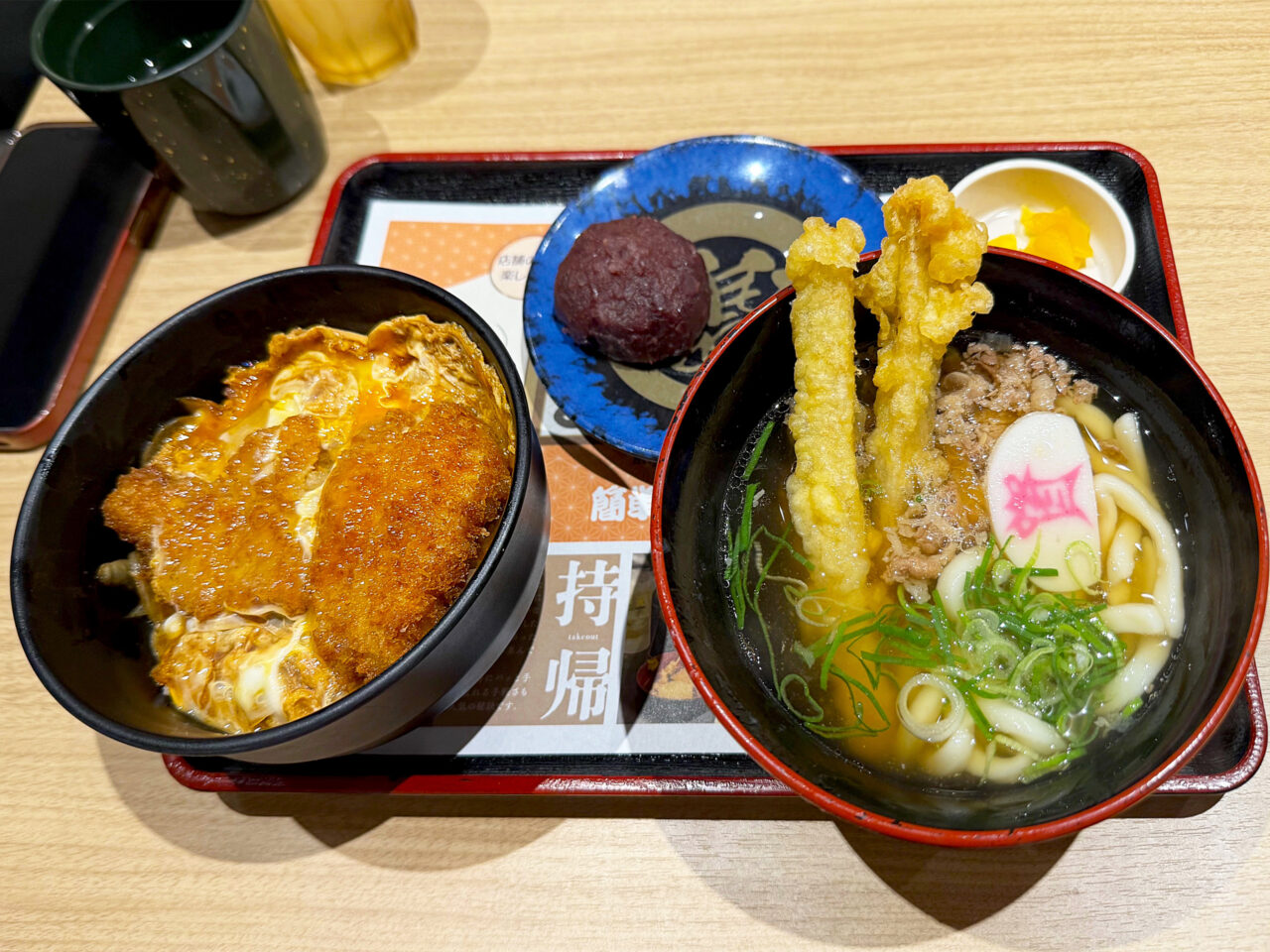 私を除く3人は、「資さんしあわせセット」の「ミニ肉ごぼ天うどん」と「ミニカツとじ丼」セット。