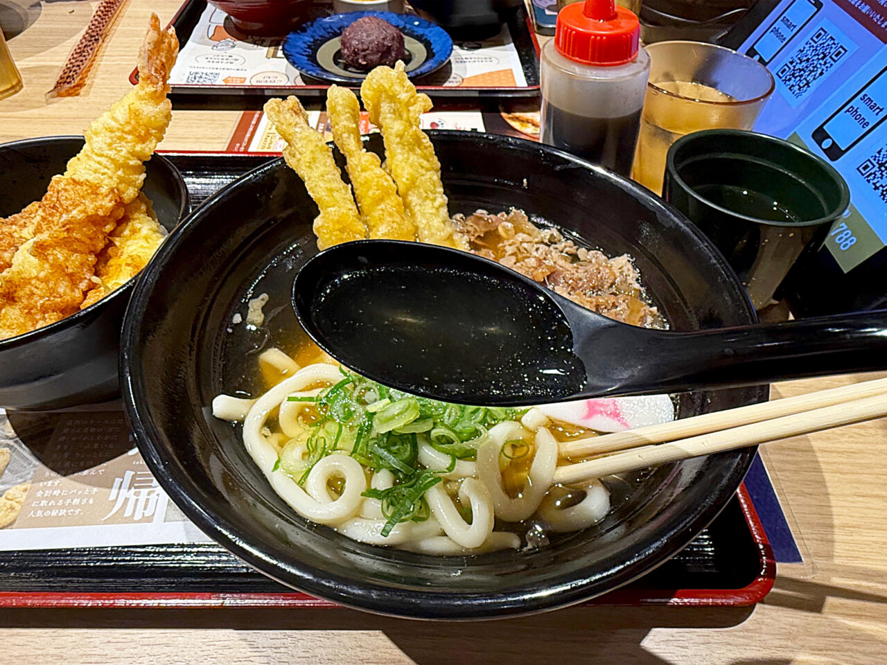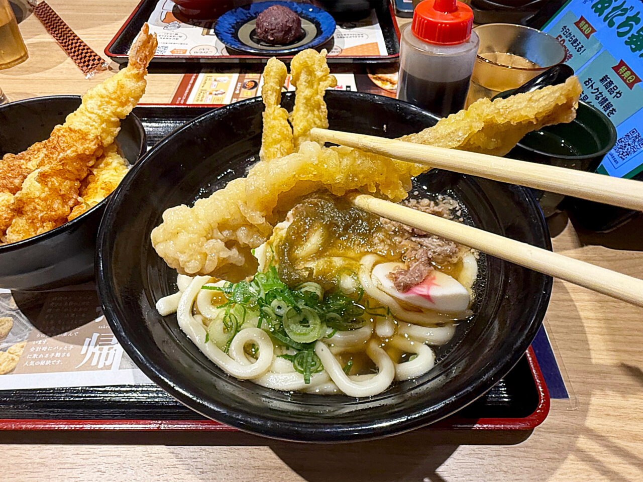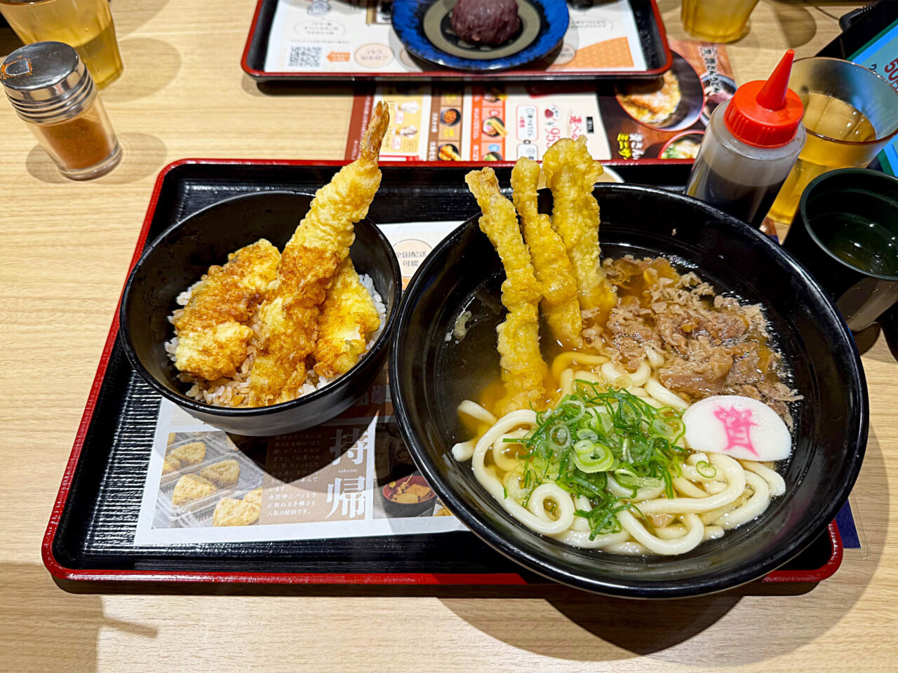 「資さんうどん 相模大野店」さんの「肉ごぼ天(3本)」+「ミニ大海老天丼」でしたが、リーズナブルで美味しくて満足度の高いセットでした。