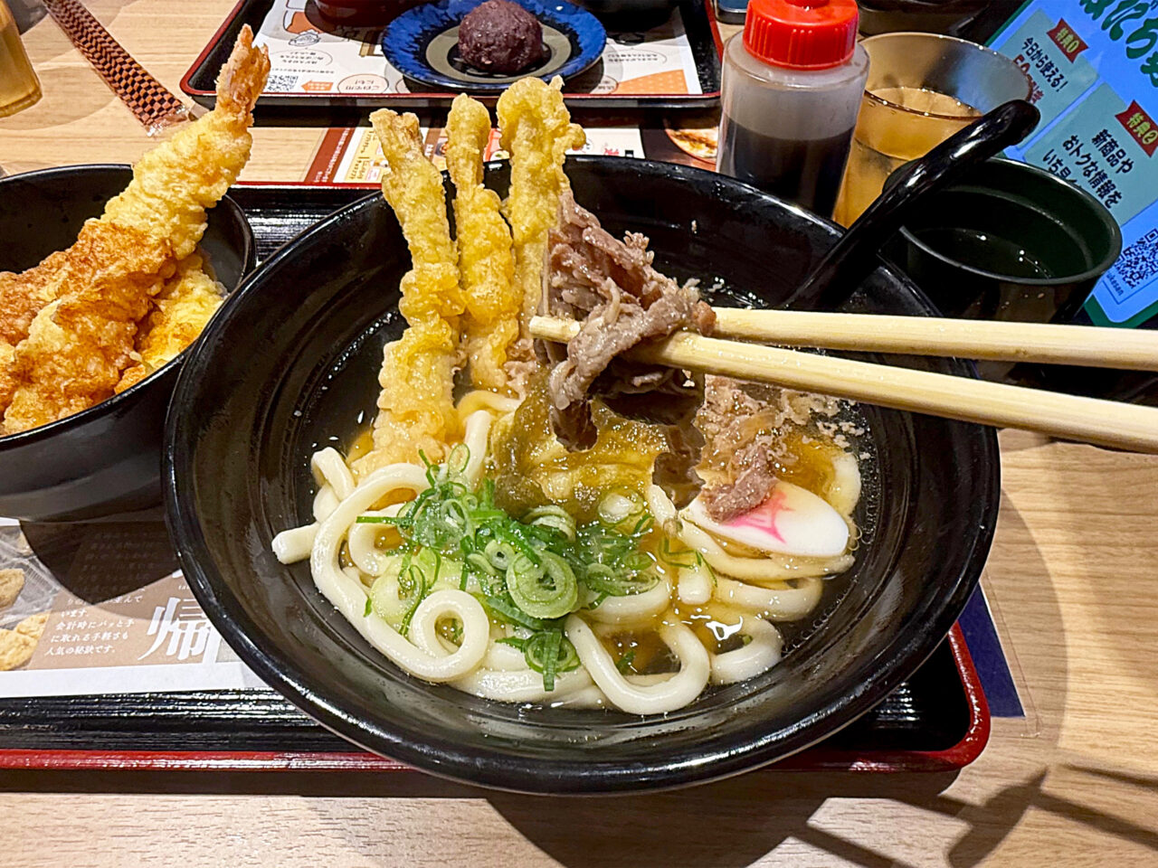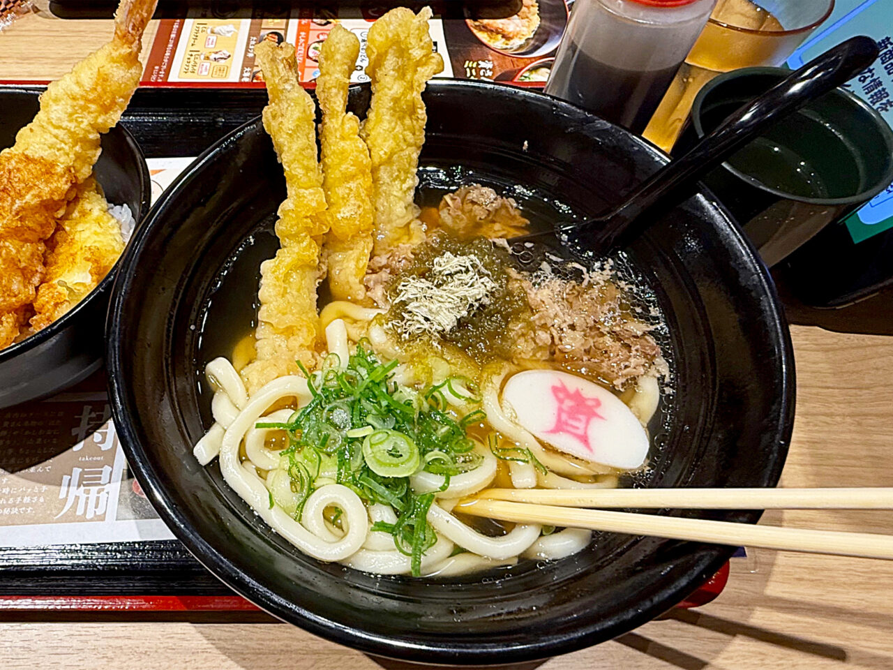 私は「肉ごぼ天(3本)」+「ミニ大海老天丼」をオーダーしました。