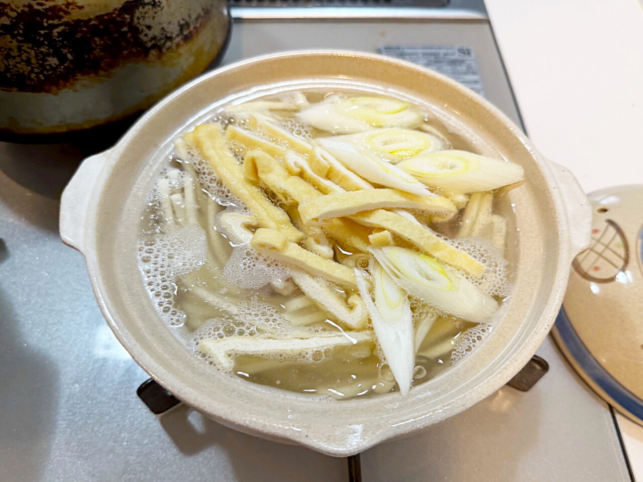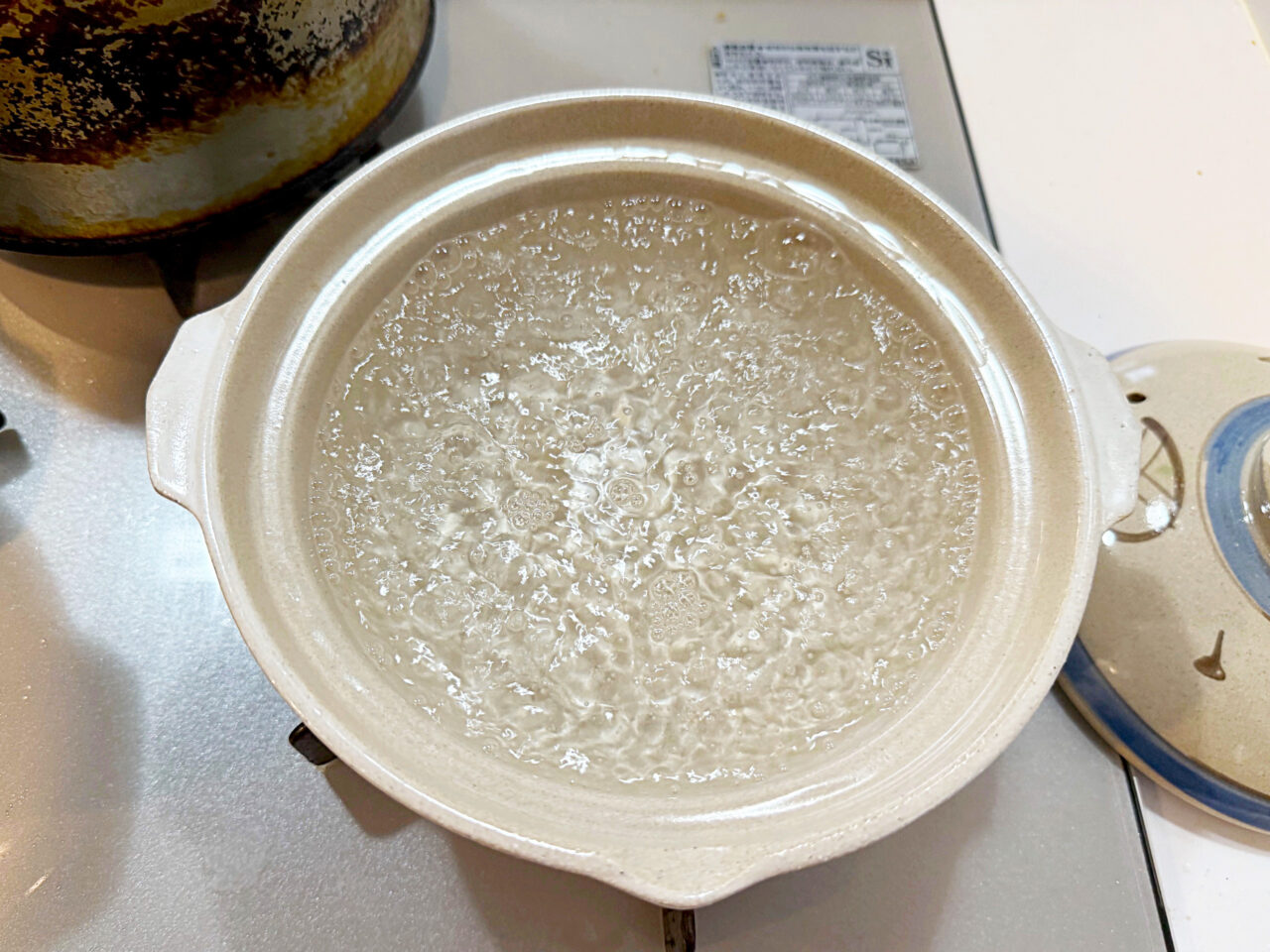 普通の鍋でも良いのですが、土鍋の方が雰囲気が出ます。