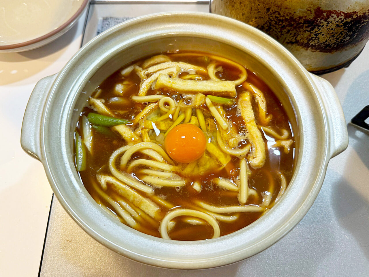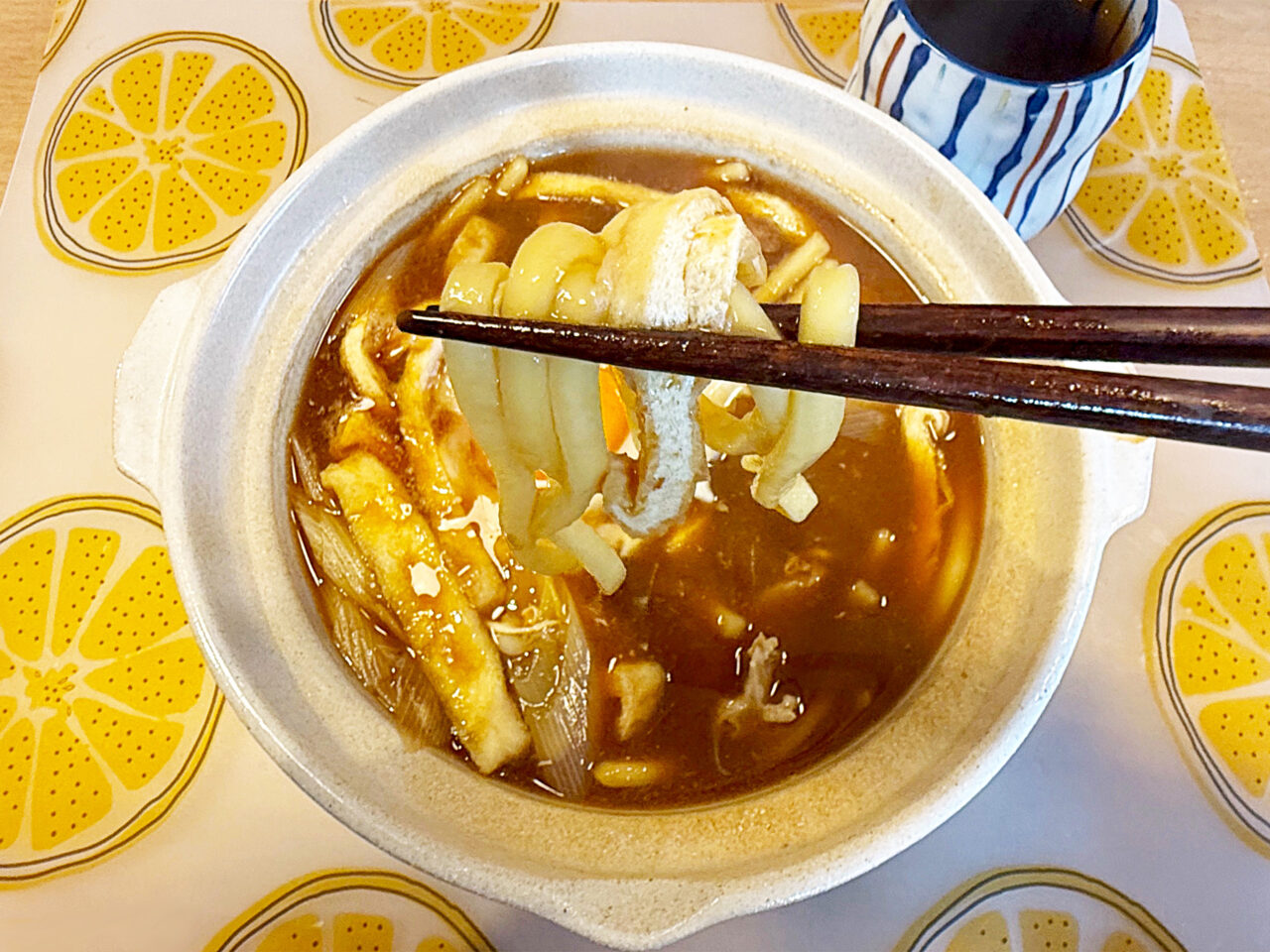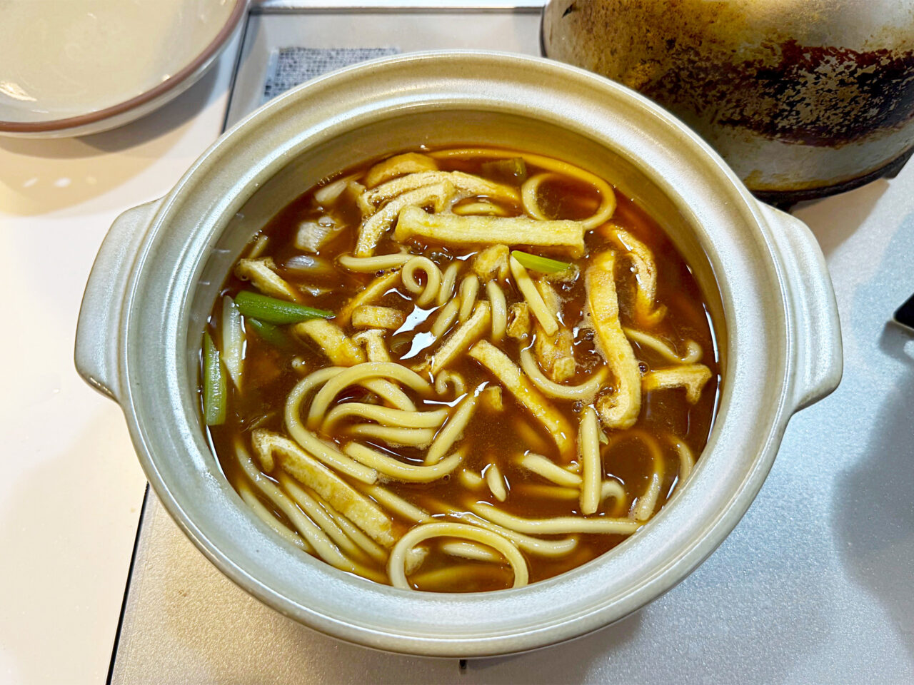 うどんが別茹ででは無いので、鍋一つで作れるのがとても良いです。