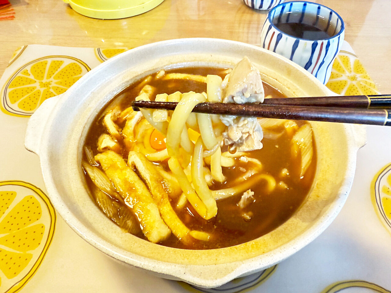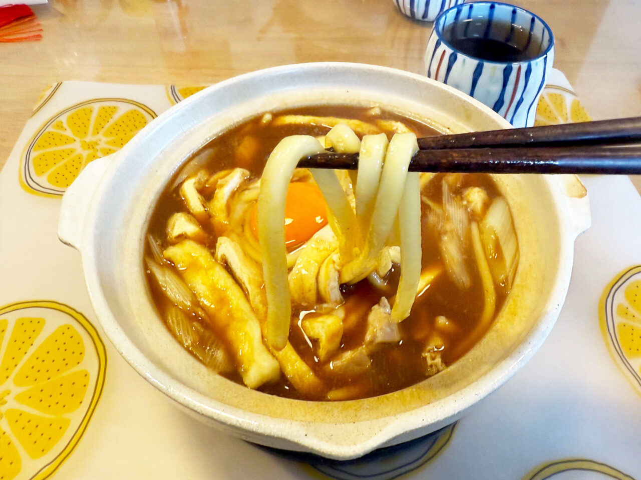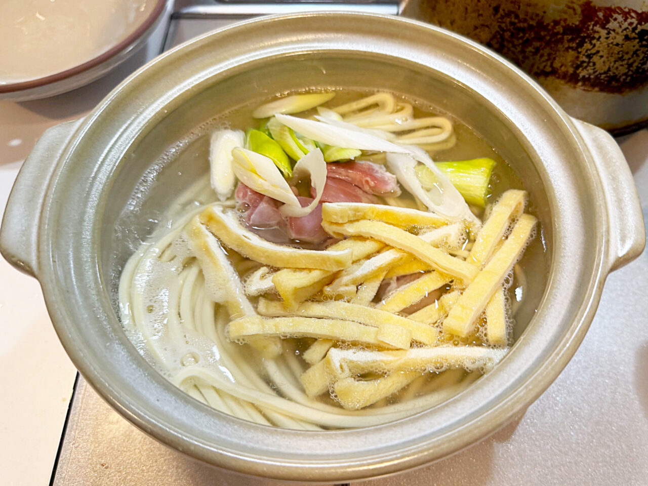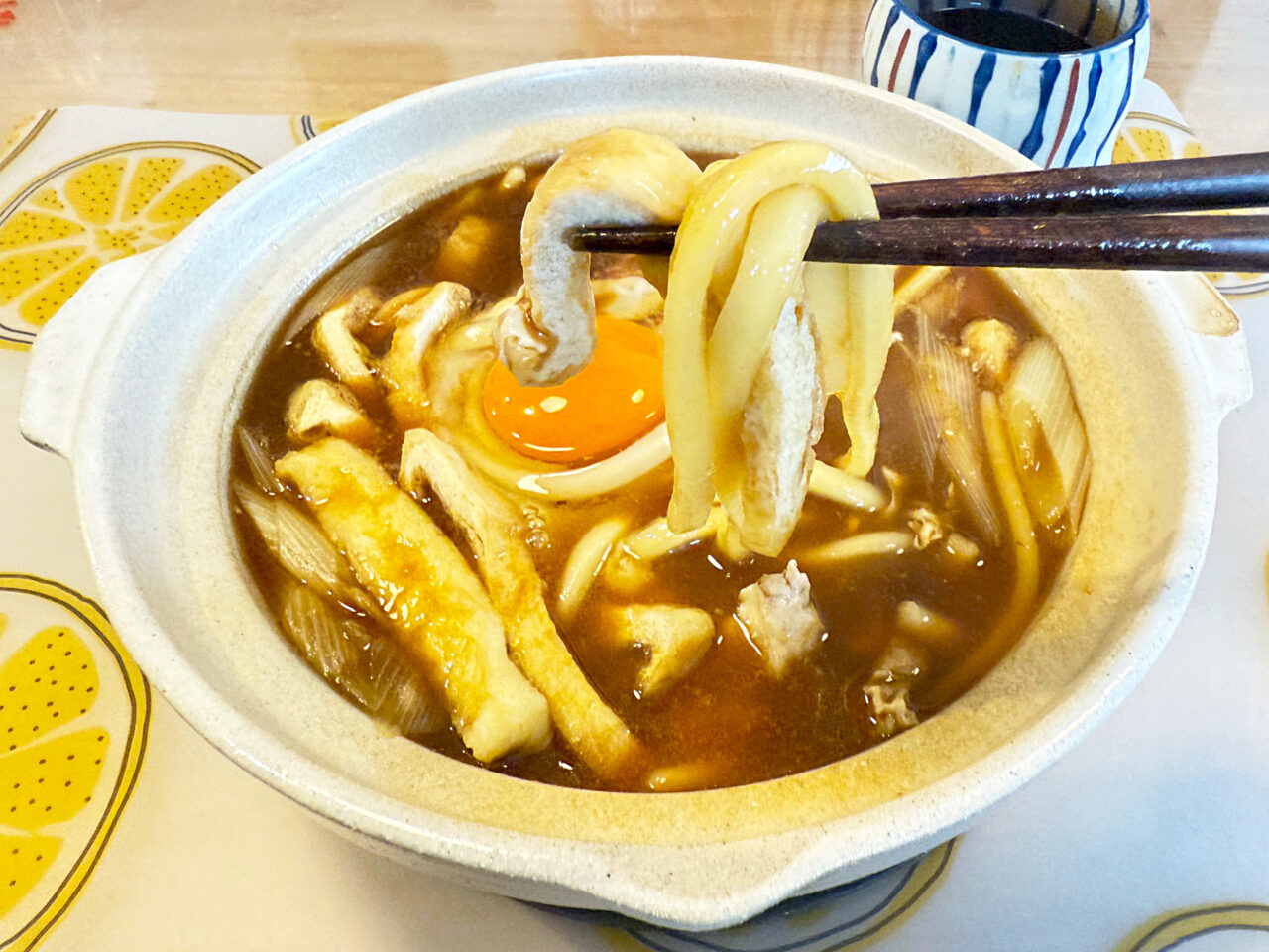 うどんが別茹ででは無いので、鍋一つで作れるのがとても良いです。