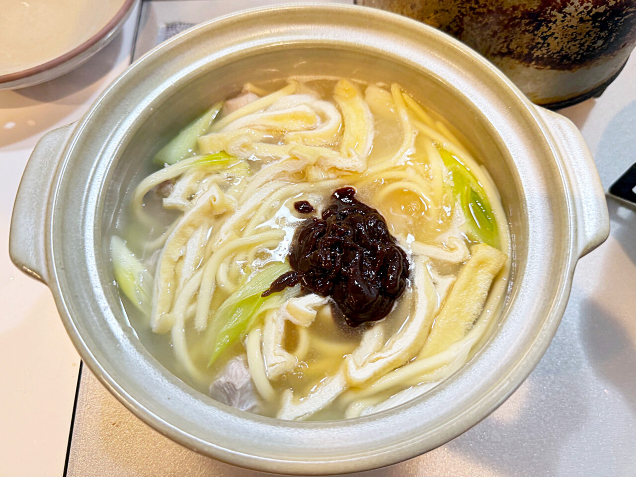 やや硬めに仕上げたので、かなり「味噌煮込みうどん」らしい硬さに仕上がりました。