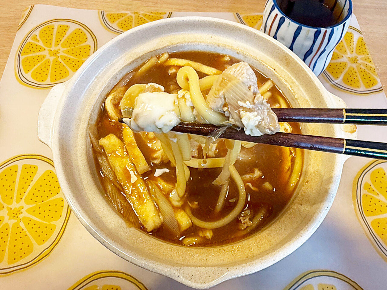 八丁味噌で煮込まれた鶏とうどんがメチャ旨です。