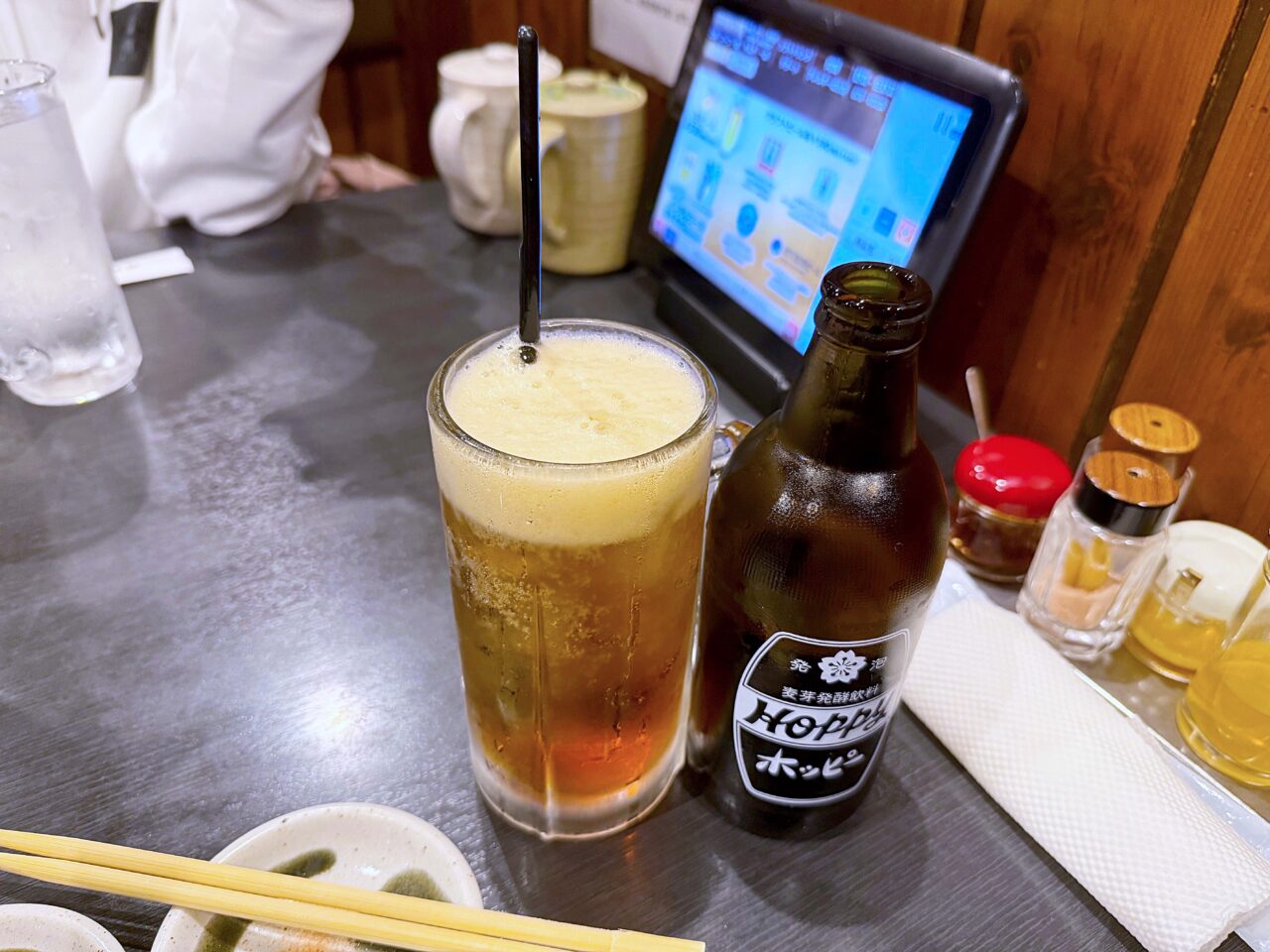 「ホッピー」は置いているお店はそこそこ有っても、「黒ホッピー」は無かったりするので、有る時は「黒ホッピー」にしています。
