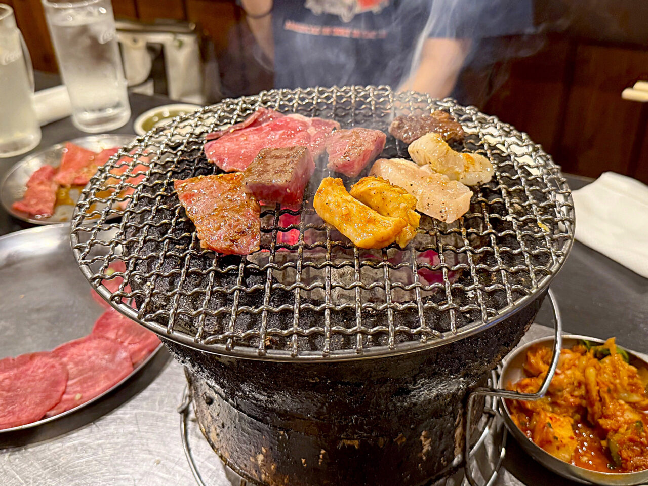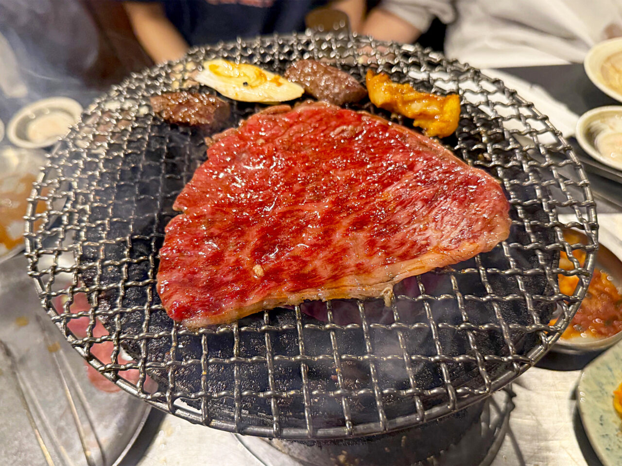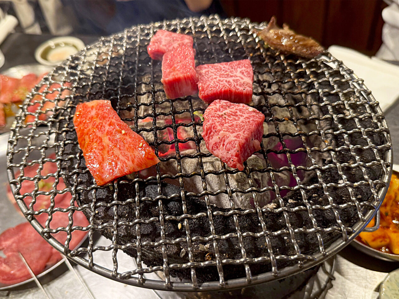 「カイノミ」と「上カルビ」も来たので焼いて行きます。