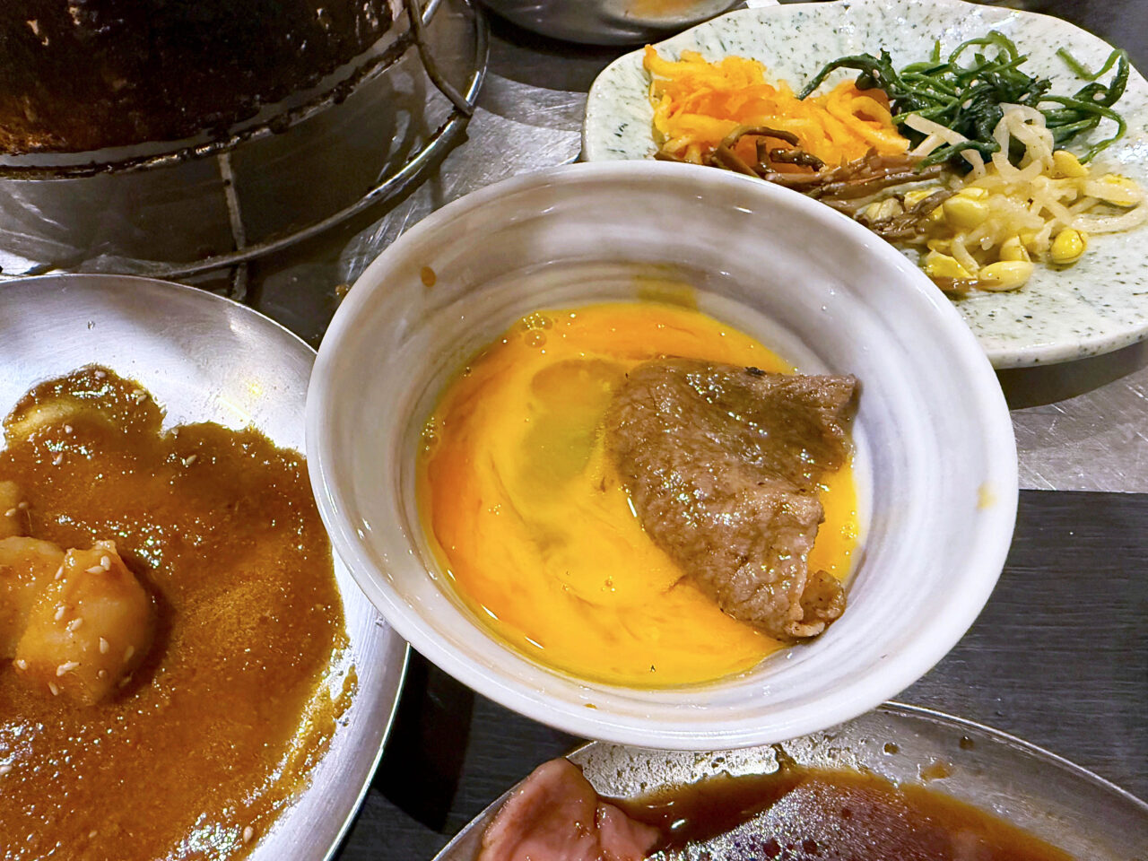 個人的にも「薄切り和牛のすき焼き風 (生卵付き)」をいただく時は必須だと思います。