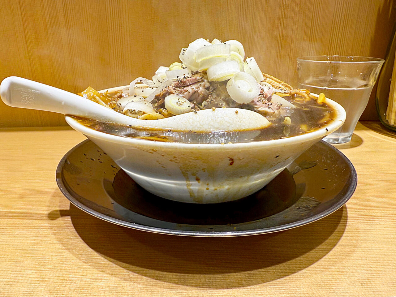 横から見るとネギの盛り方が凄いです。