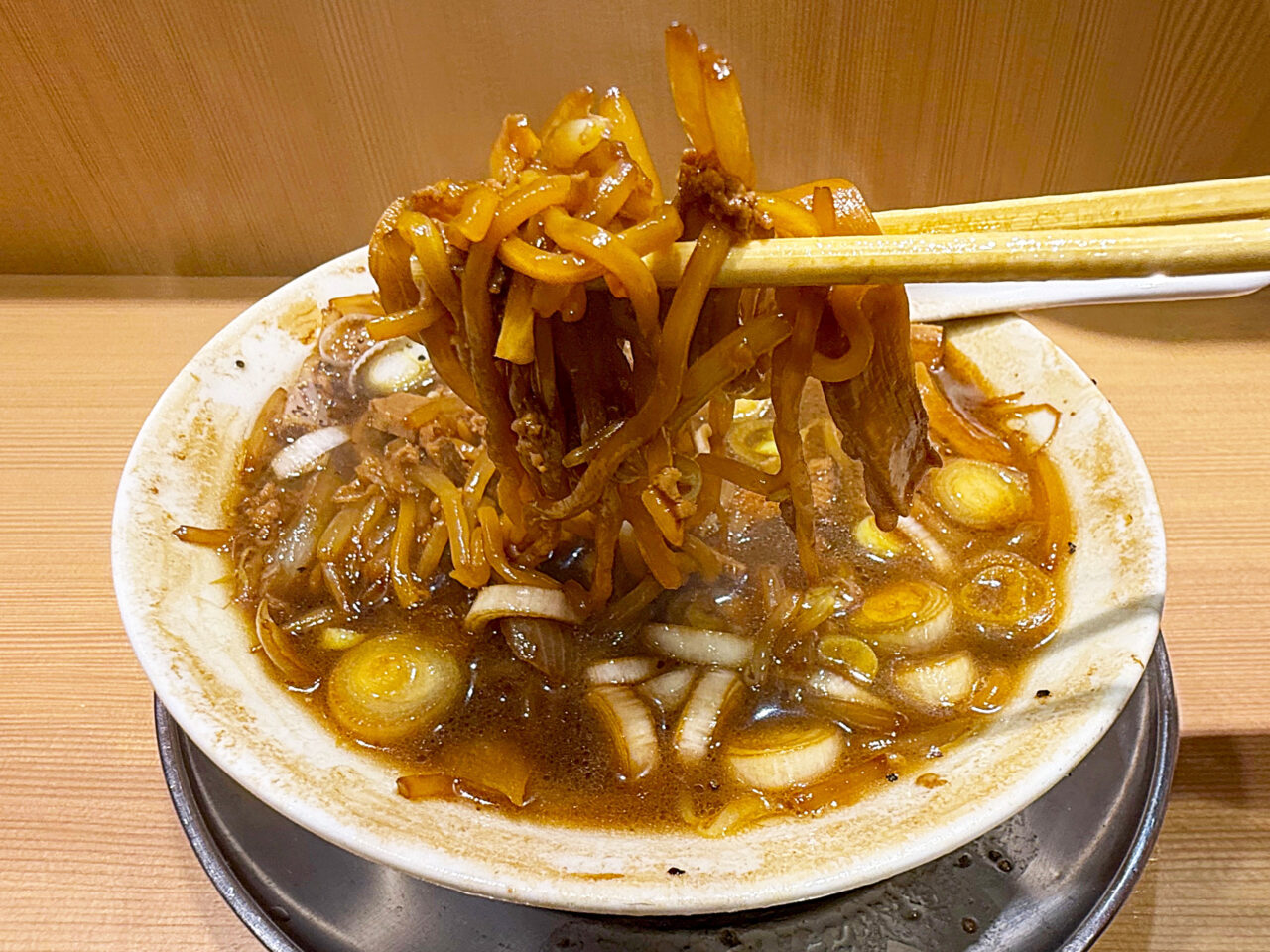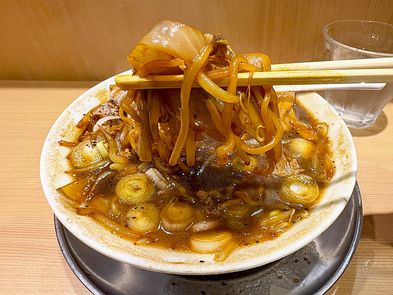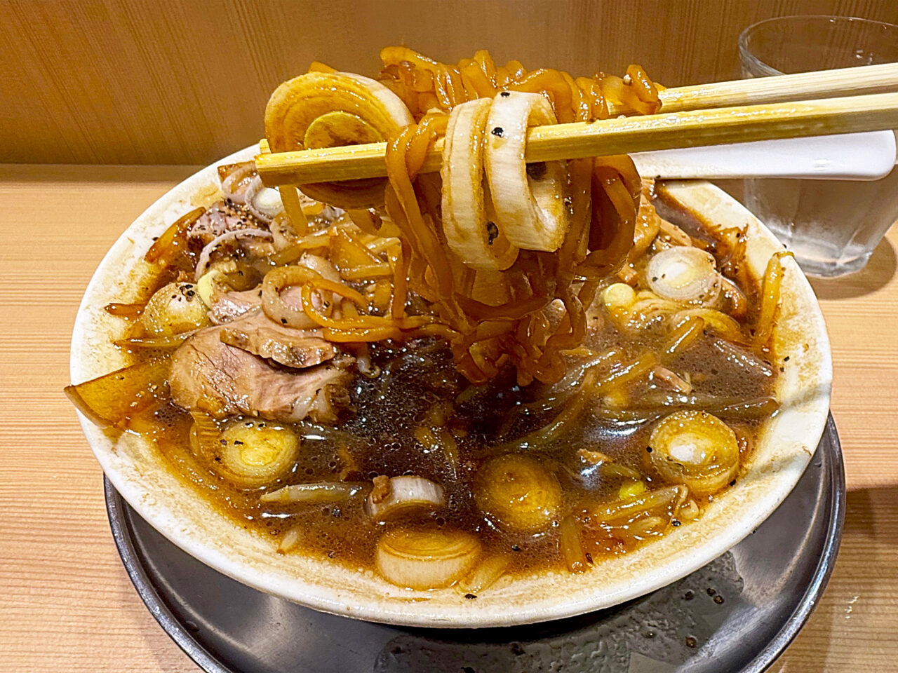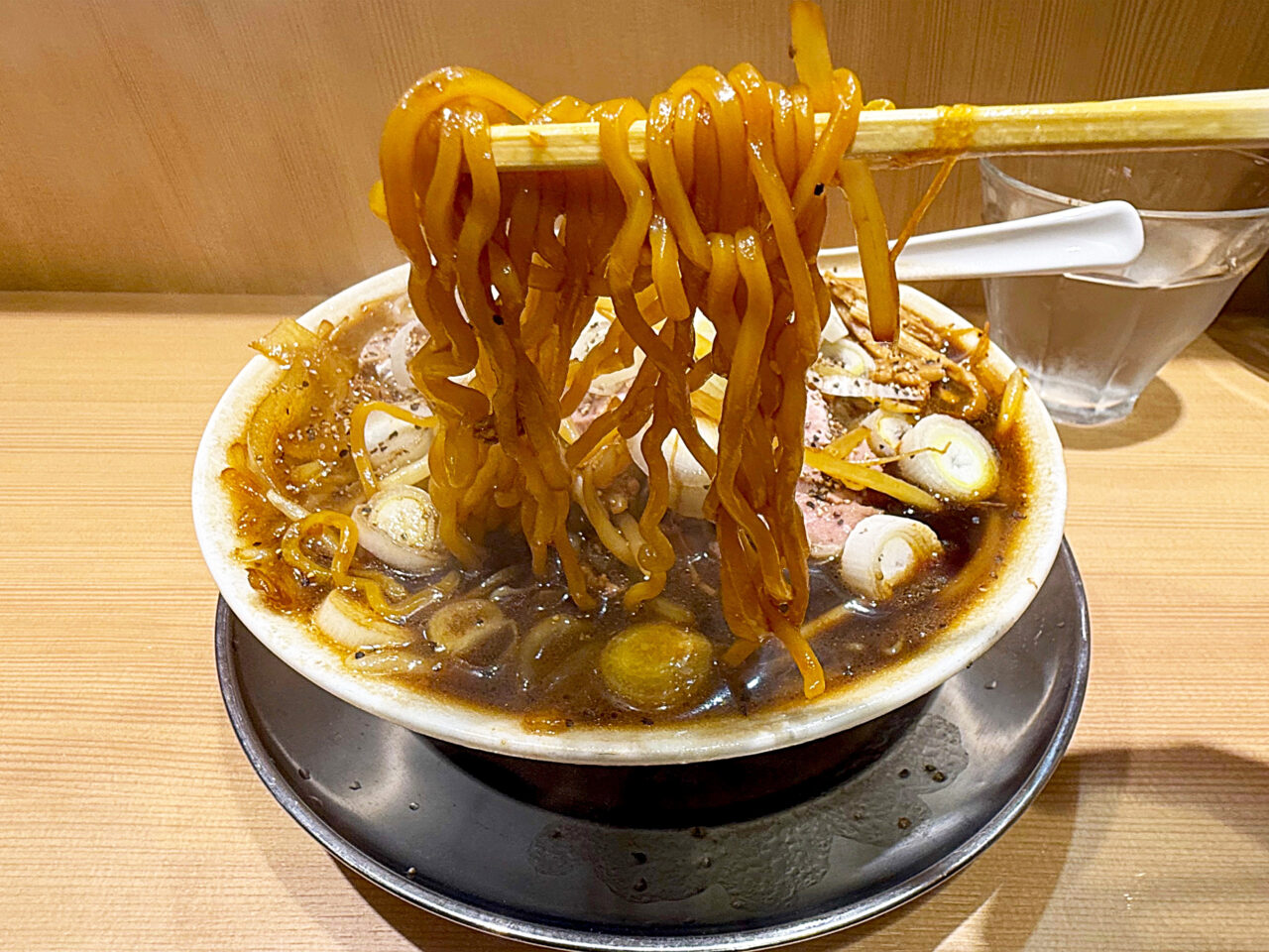 「森住製麺」製の麺の硬めな食感と味に、ザク切りのネギの味と食感がピタリと合います。
