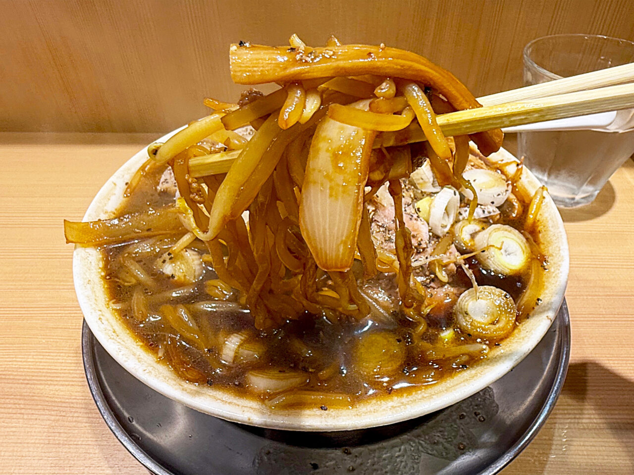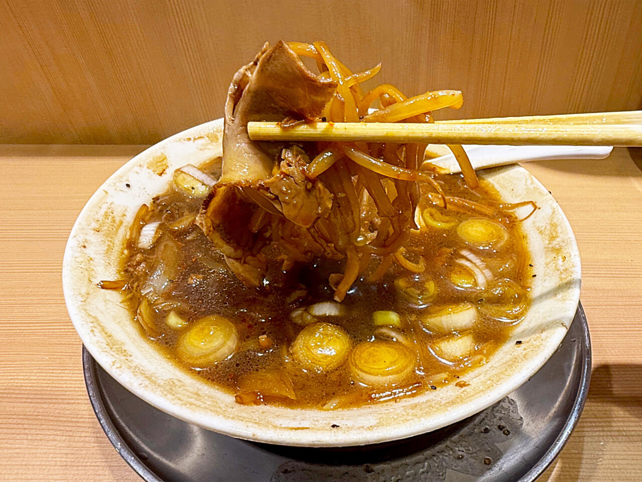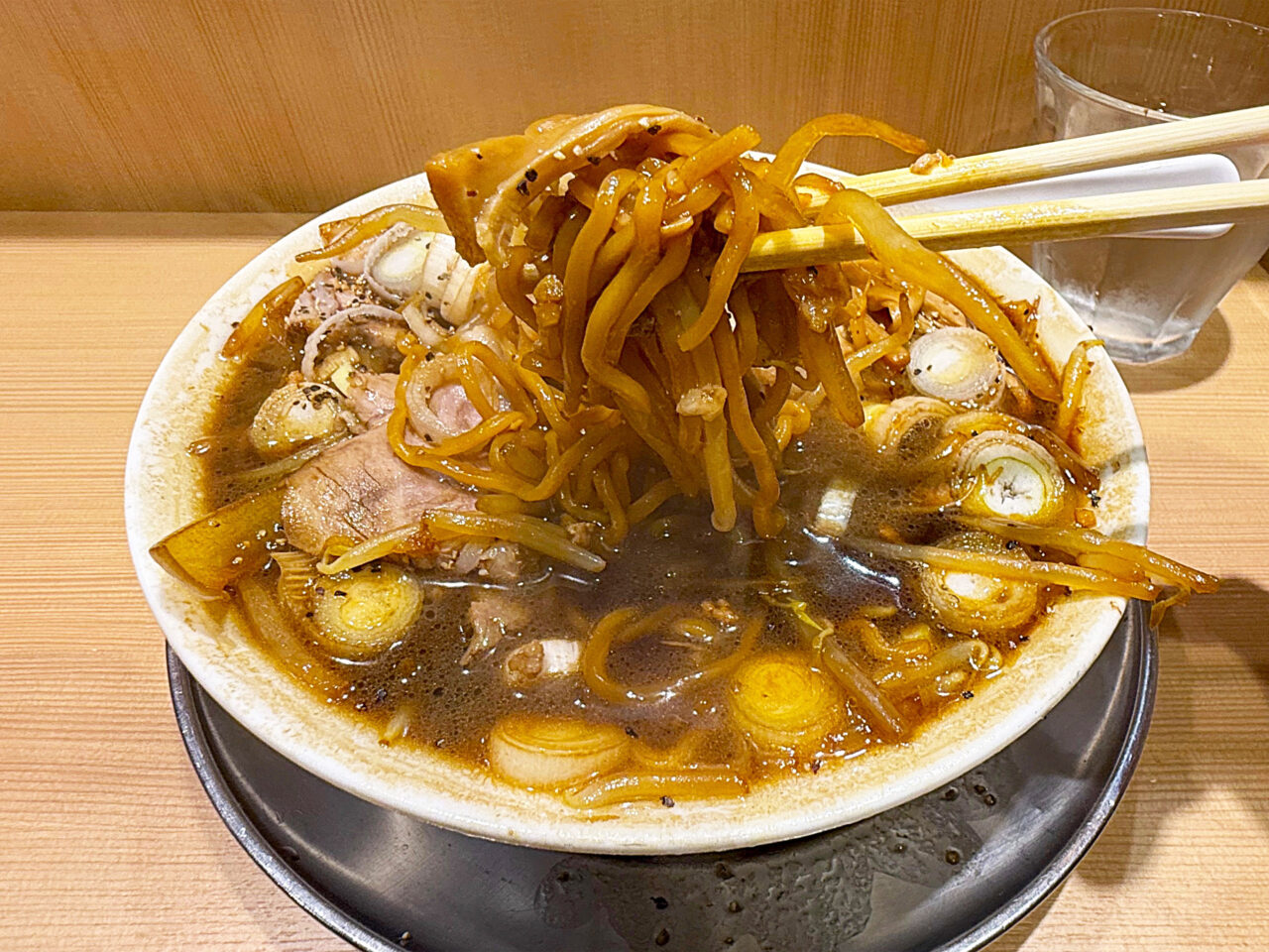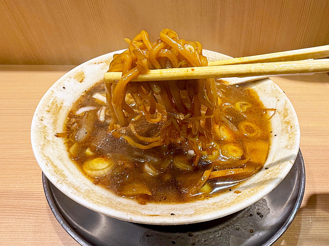 「森住製麺」製の麺の硬めな食感と味に、ザク切りのネギの味と食感がピタリと合います。