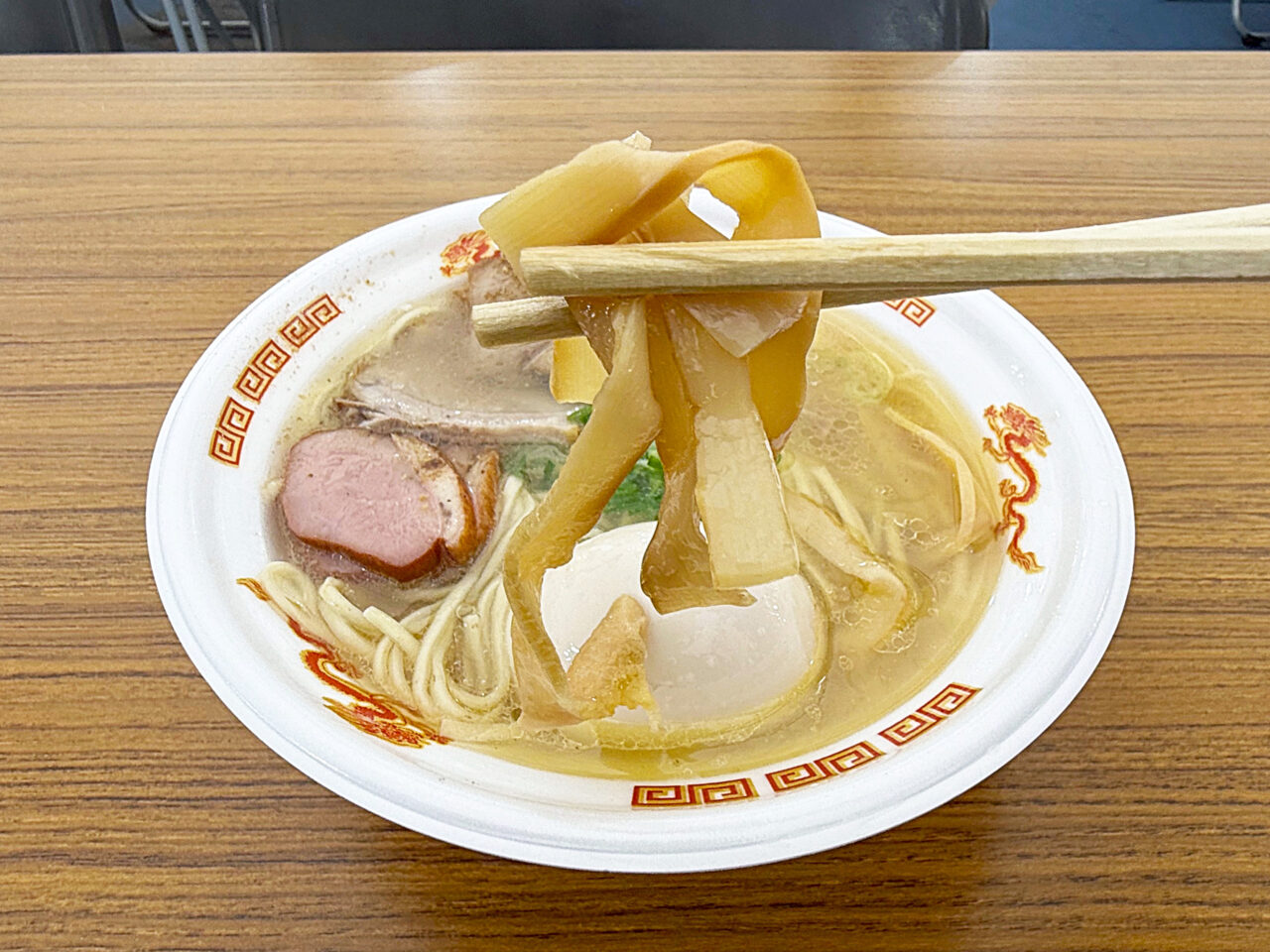 山椒香る塩味スープと、平打ちっぽい細麺が絶妙に合っています。