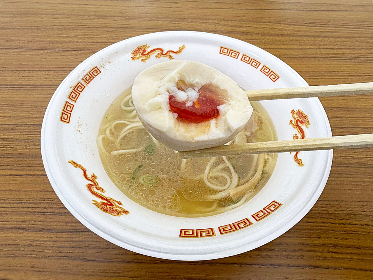 半熟味玉も絶妙な茹で加減と味付けで山椒香る塩味スープがとても良く合います。