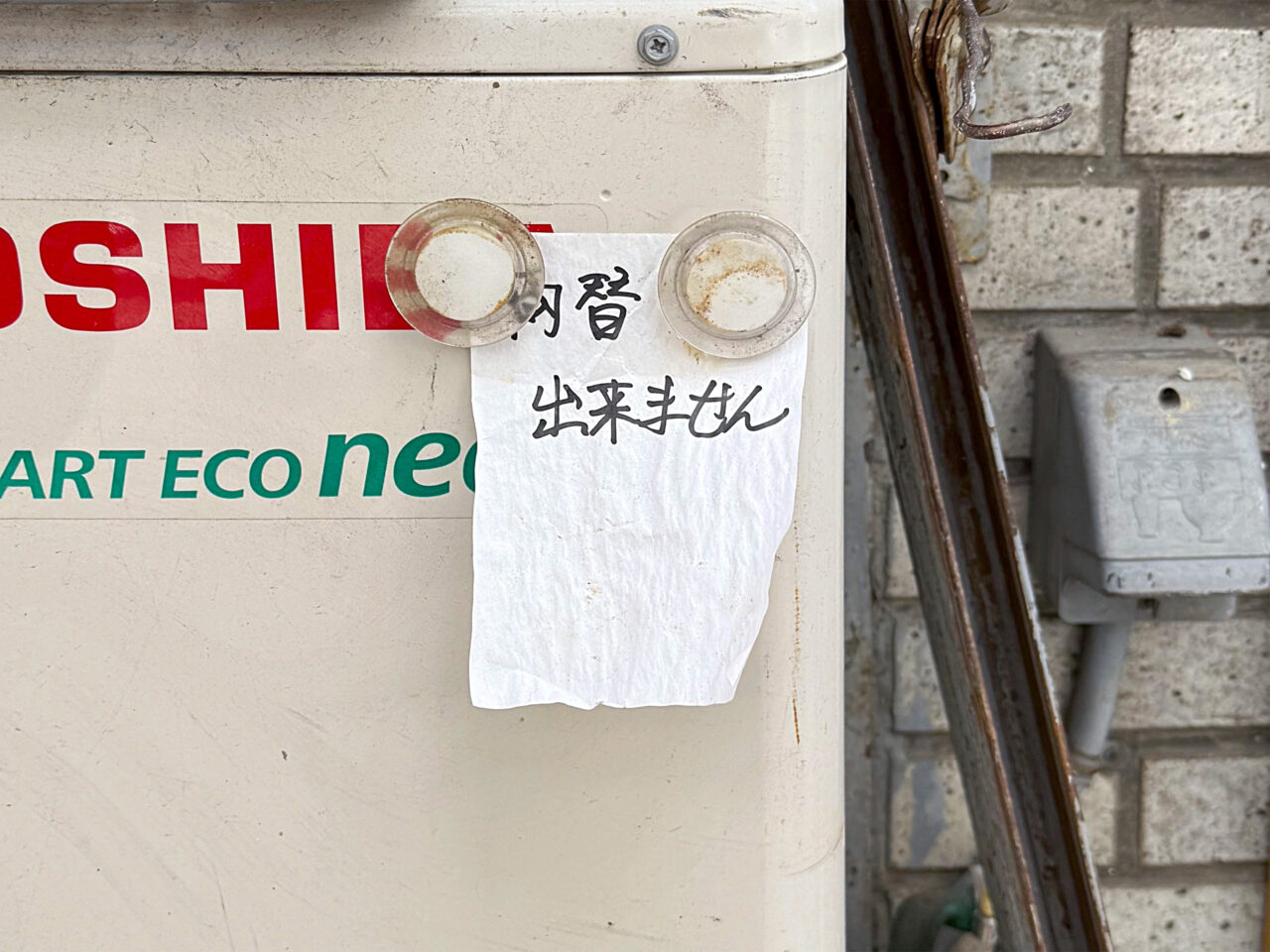 隣のお店の壁に「ラーメン健太は両替できません!」と有ります。