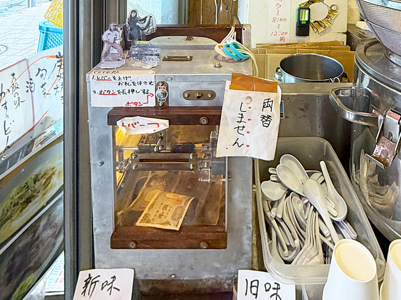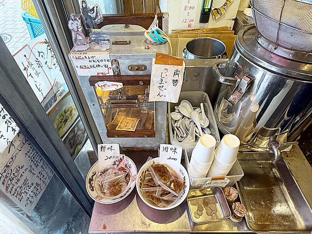 ここで1000円札を「pay cashier」に入れて支払い、レンゲとコップを取り、水を汲んで行きます。