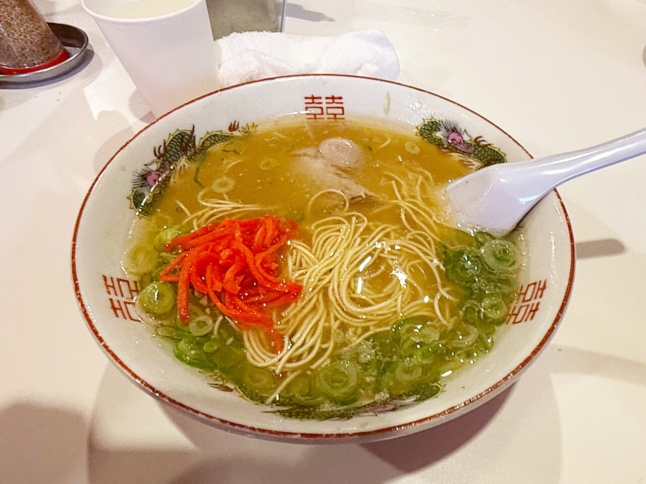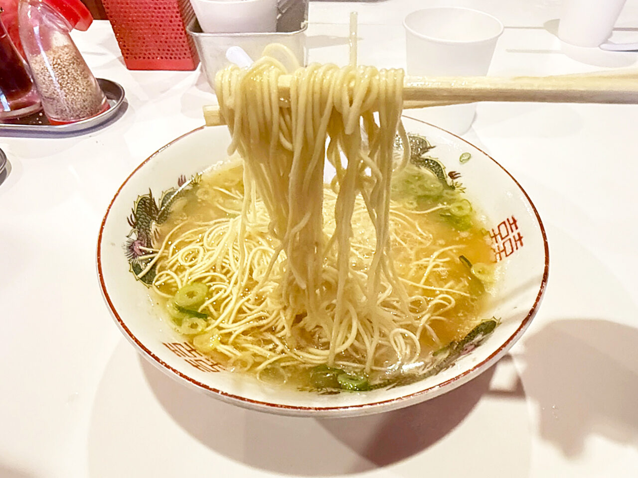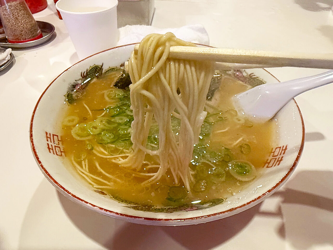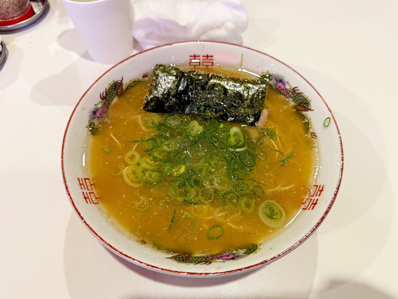白濁が弱めで色が薄く、タレも少なめなので非常にアッサリしています。