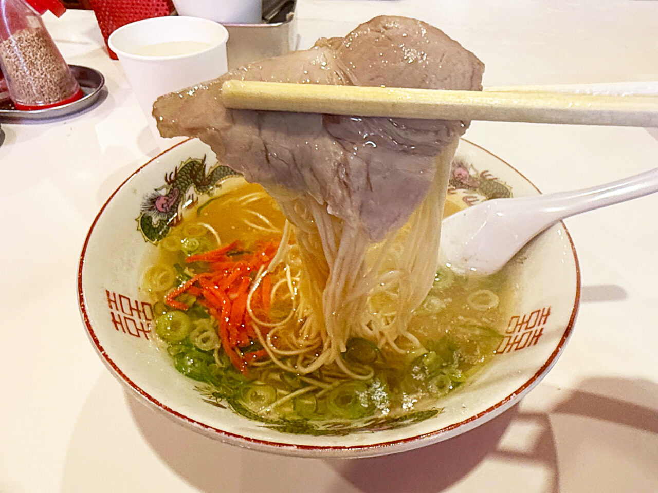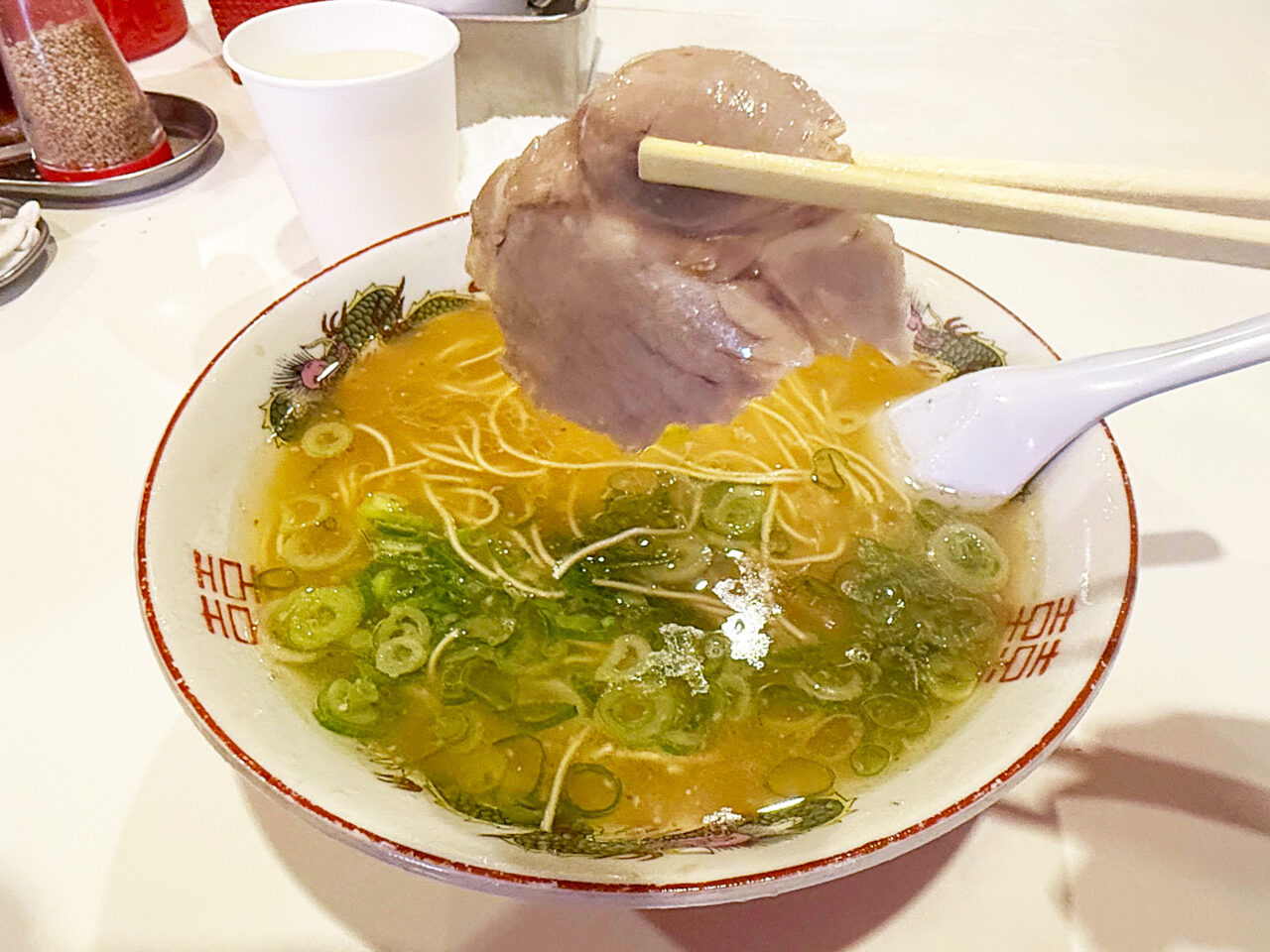 博多ラーメンは元々薄手で小ぶりなチャーシューが特徴です。