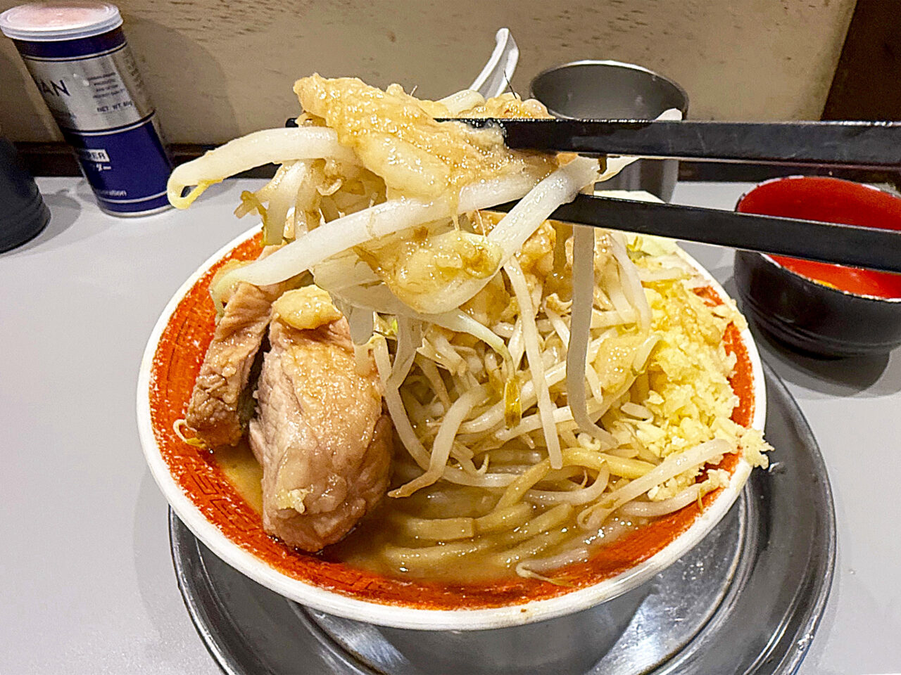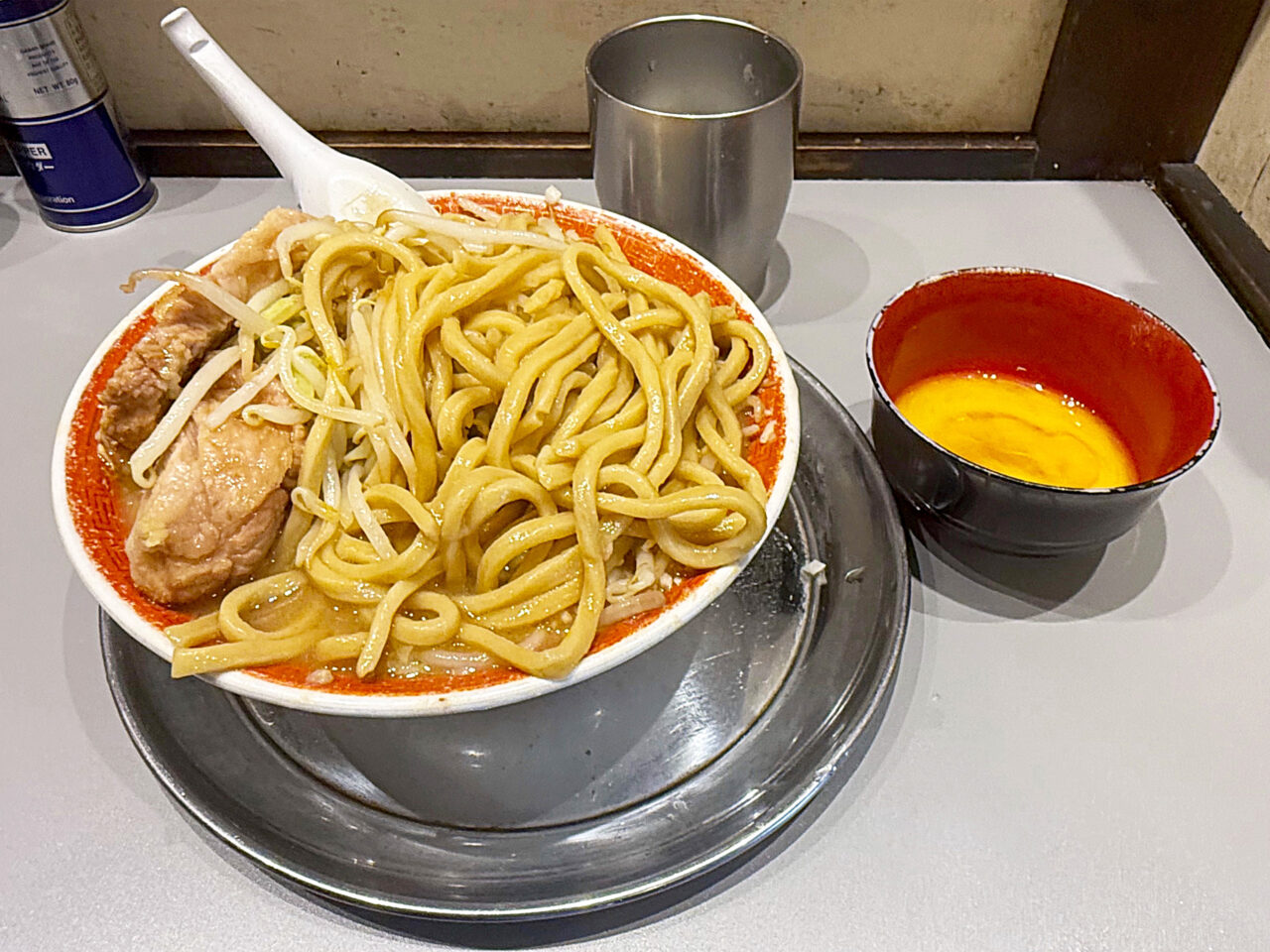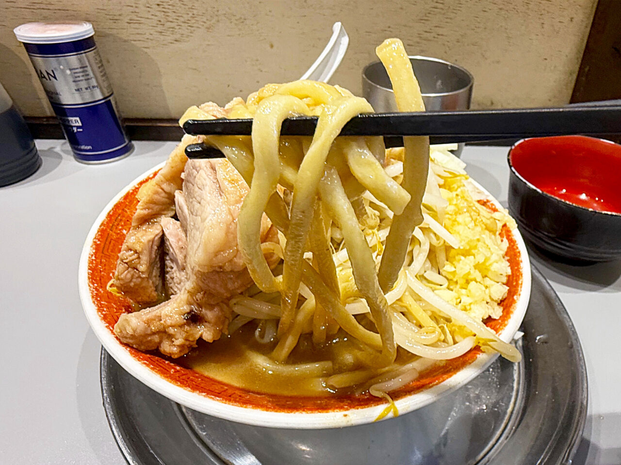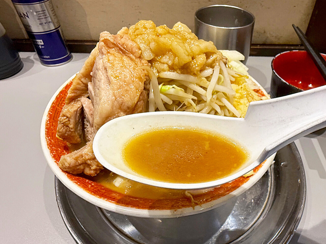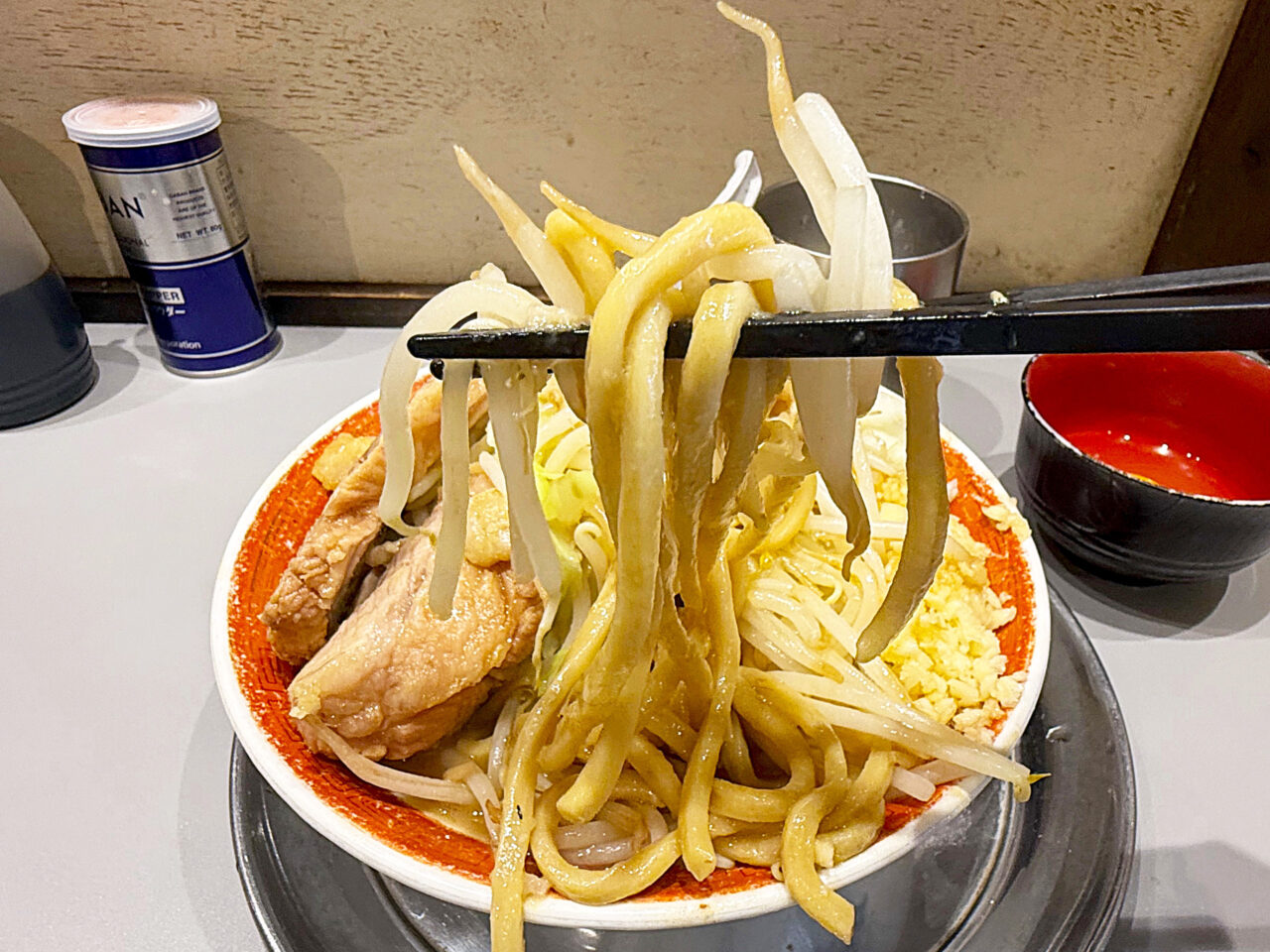 このアブラの旨さも「麺でる 相模原店」さんのウリの一つで、この味付きのアブラでヤサイをいただくのがメチャメチャ美味しいです。