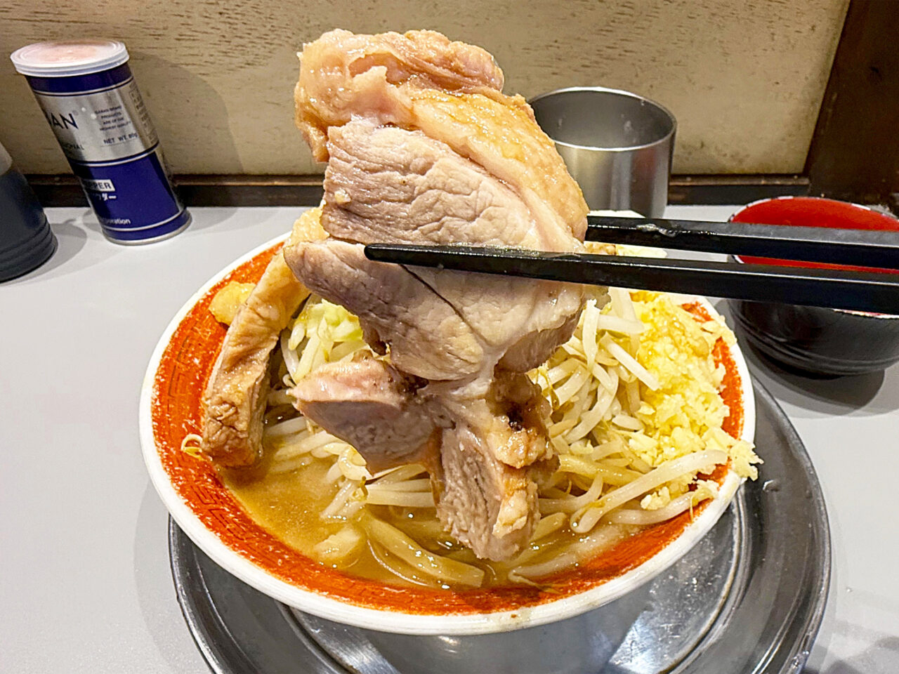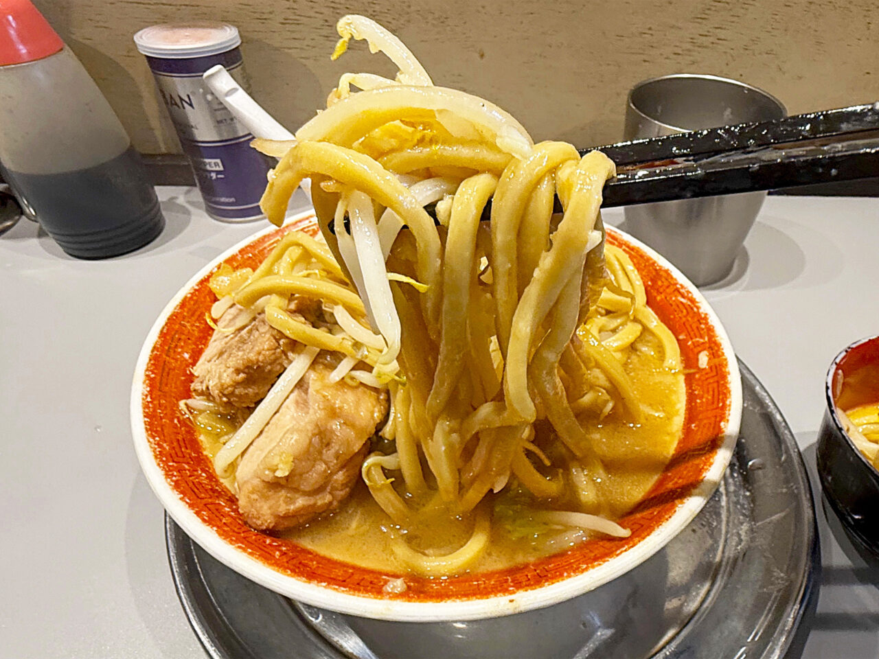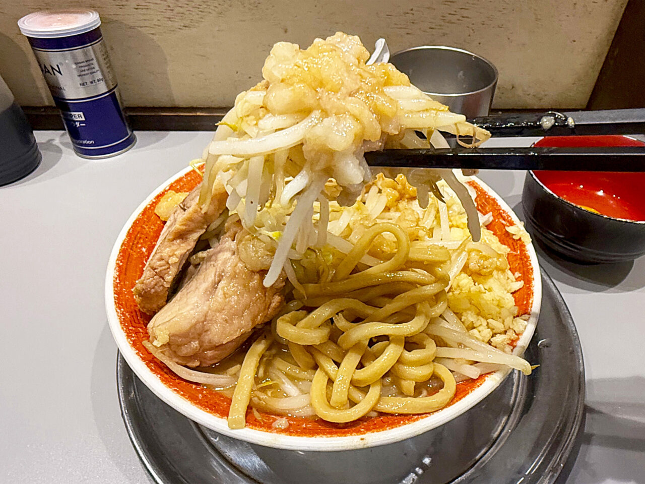 アブラとヤサイが旨過ぎて、天地返しするまでアブラが持たないかも知れません。