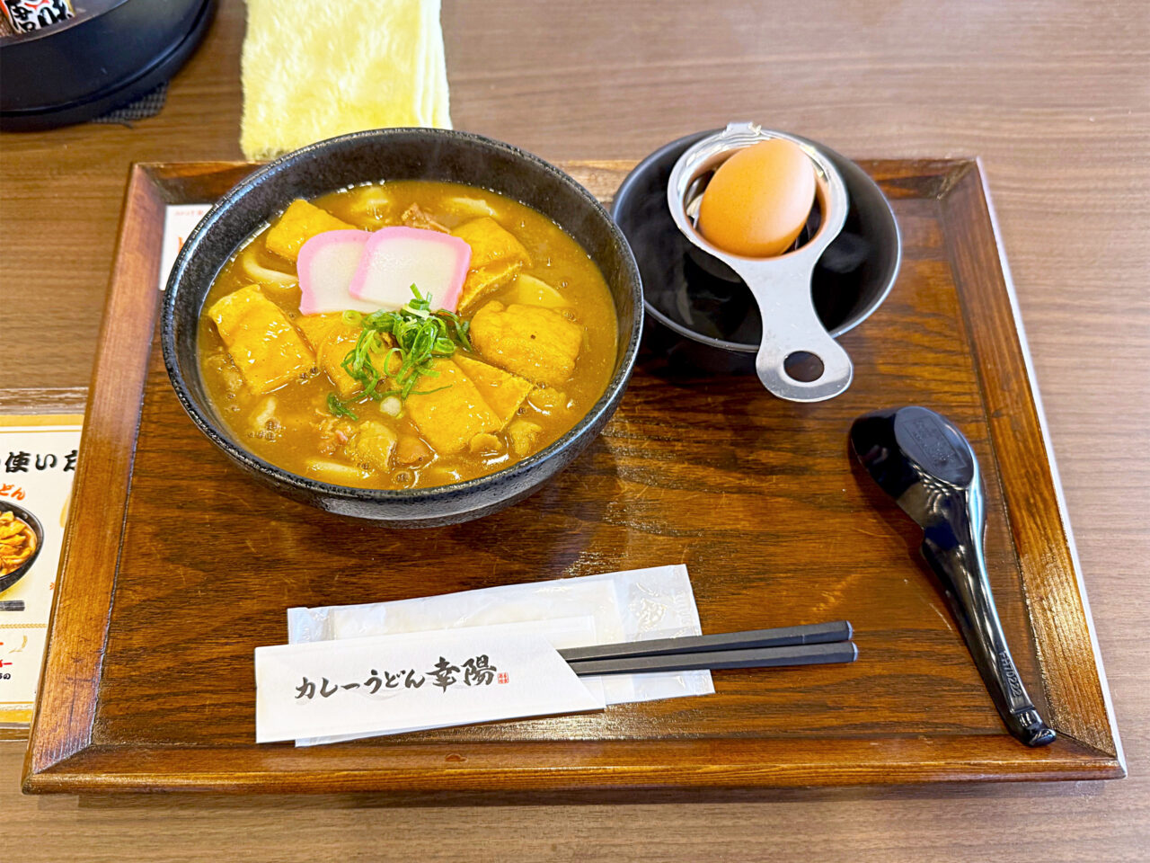 折角の「カレーうどん幸陽」さんなので、「カレーうどん」とおすすめトッピングの「生卵」にしました。