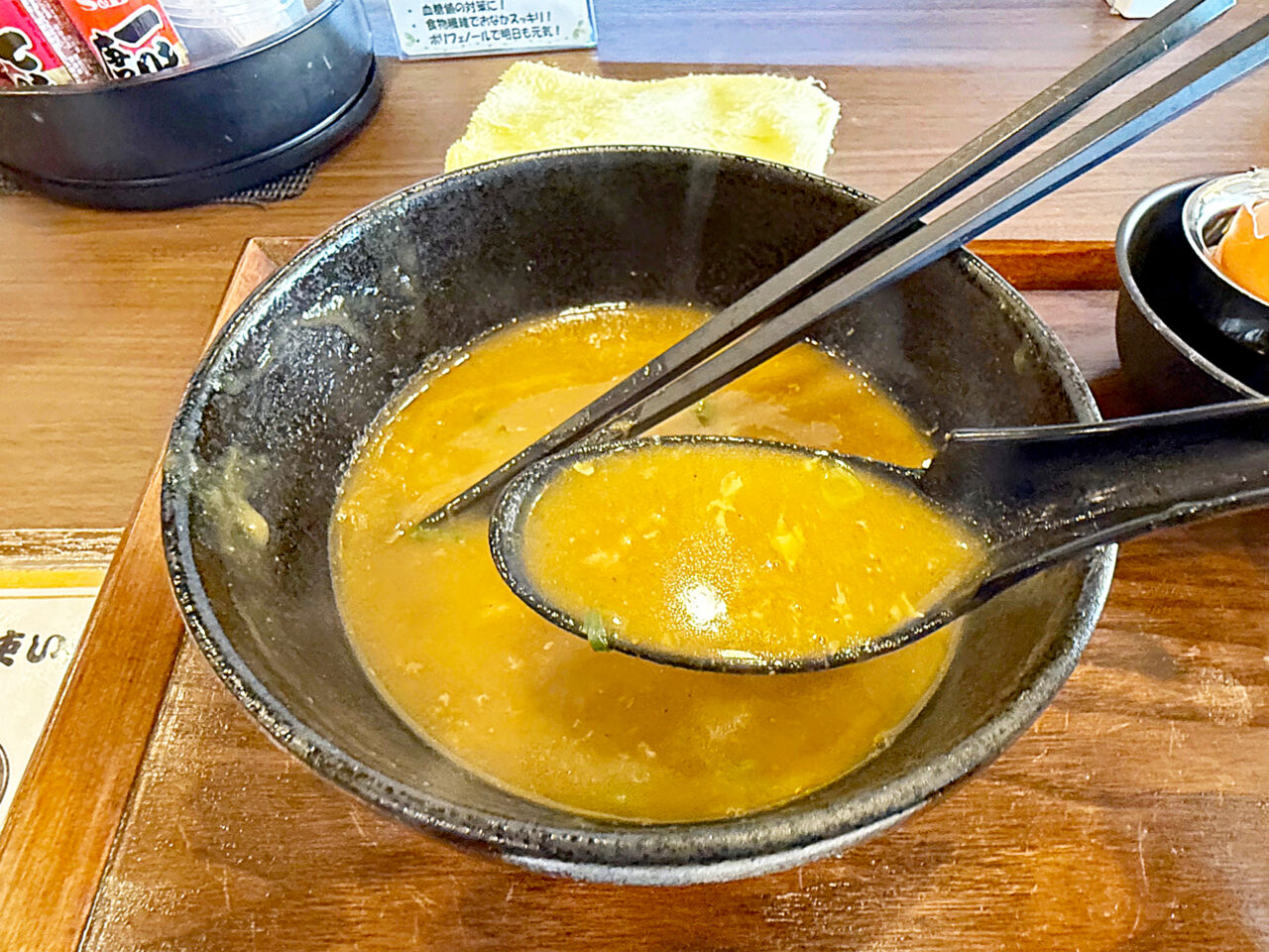 全卵ならではの黄身と白身の風味と、カレー味のスープがドンピシャに合います。