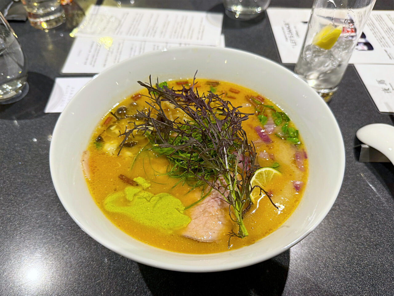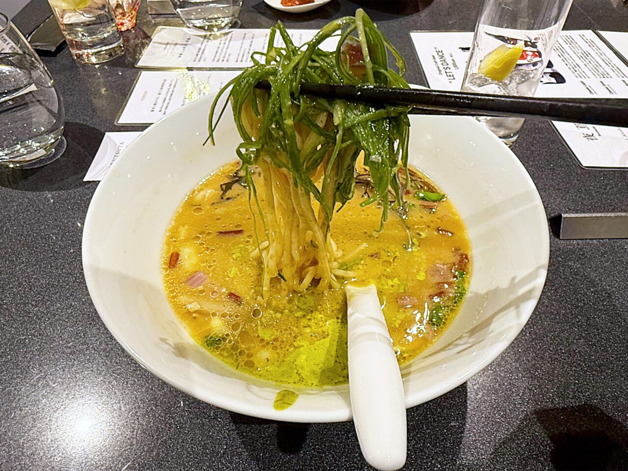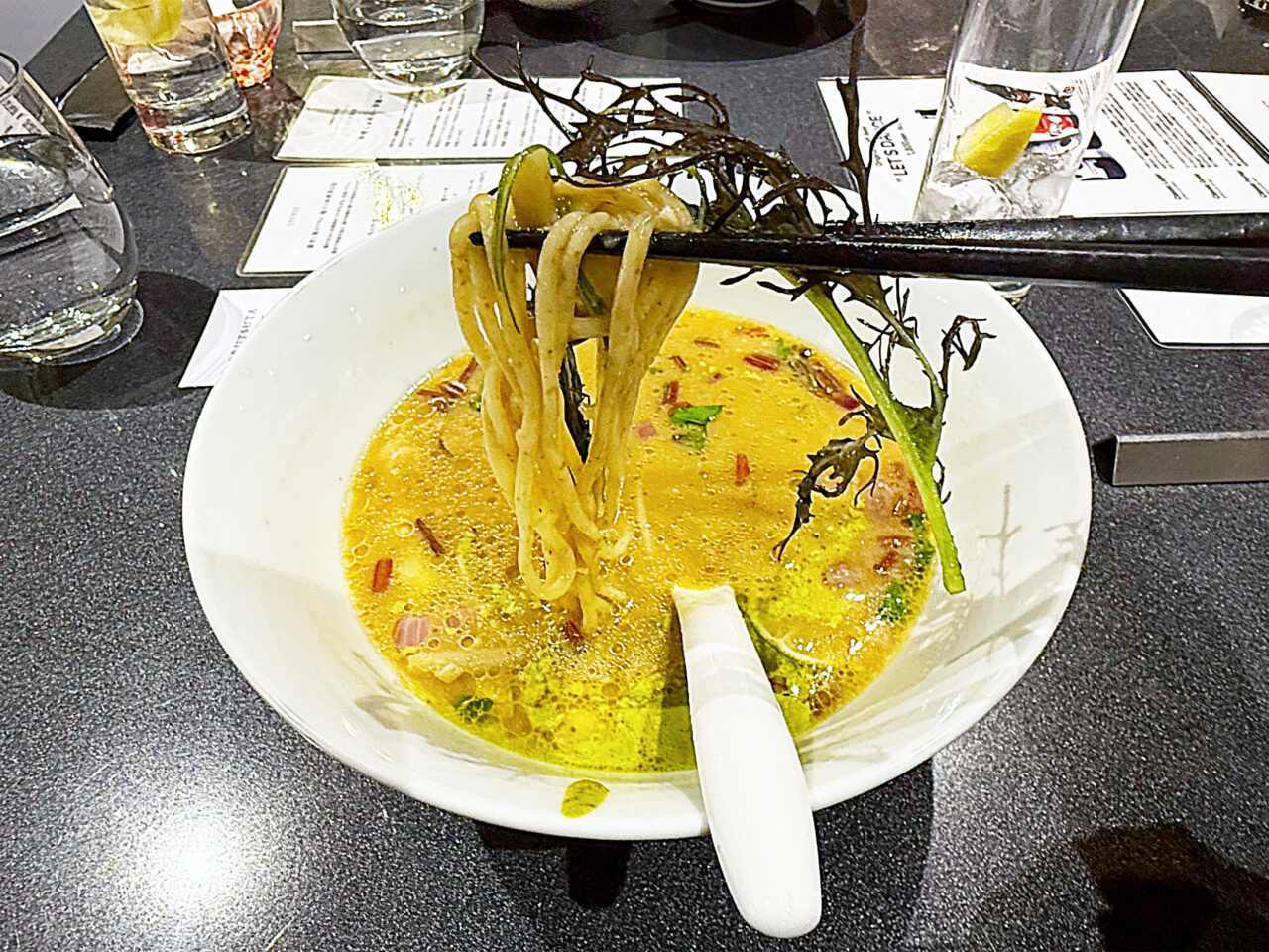 ラーメンスープや使用食材をを見事なアレンジで提供する、Limited Courseの前菜も楽しめました。