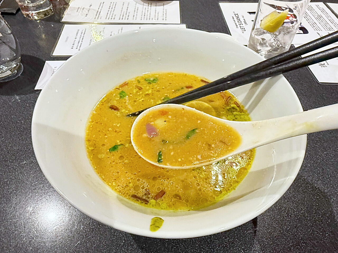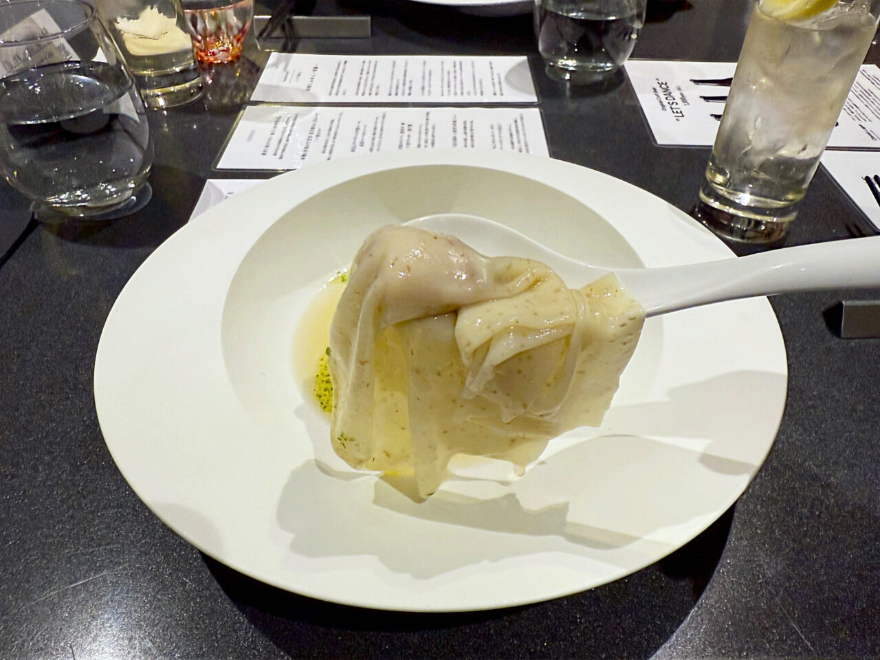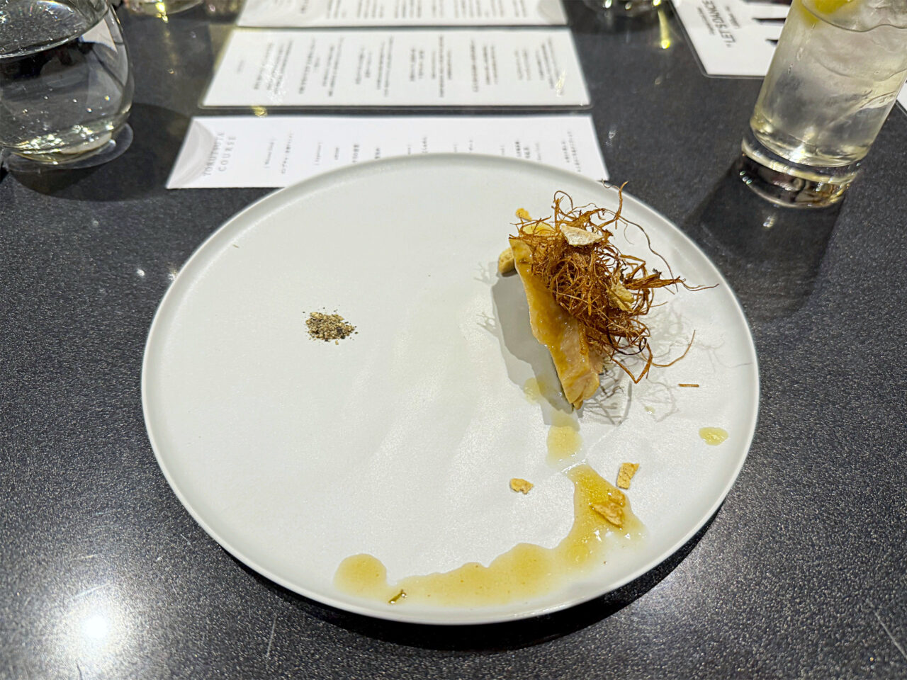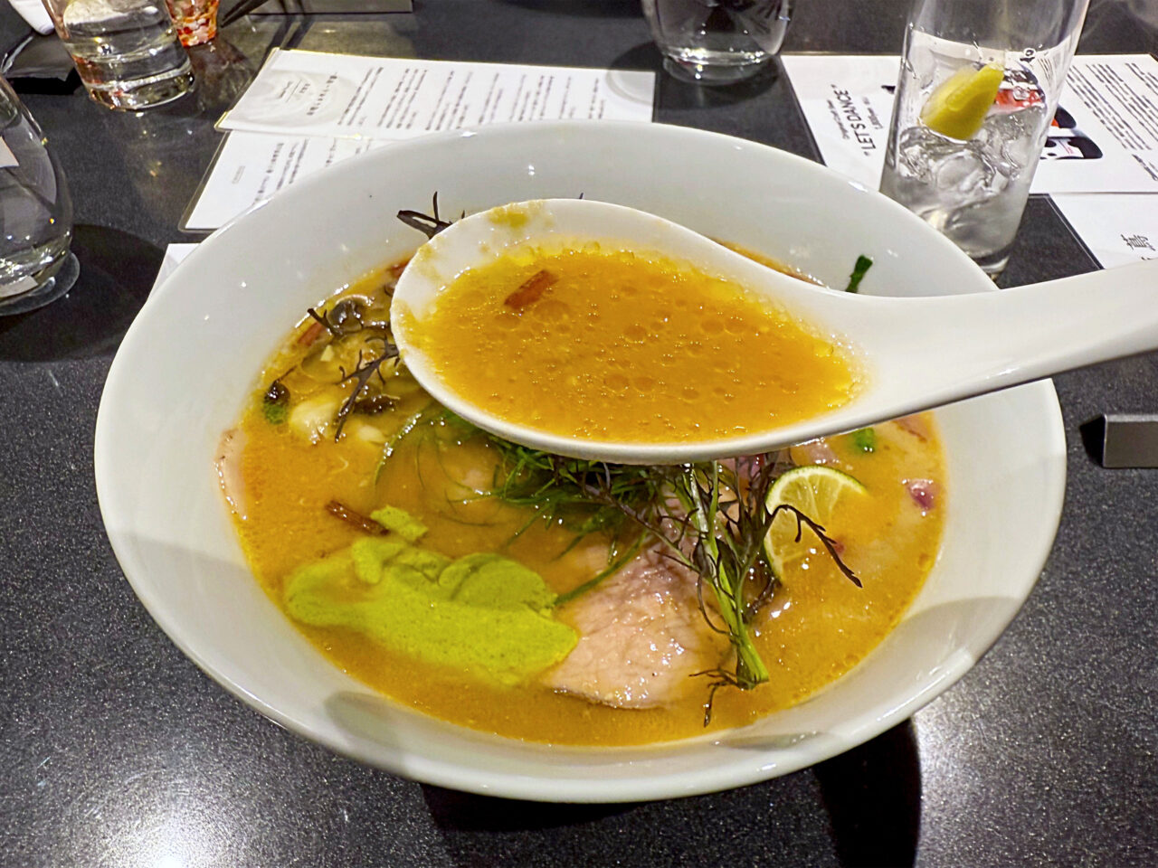 ラーメンスープや使用食材をを見事なアレンジで提供する、Limited Courseの前菜も楽しめました。