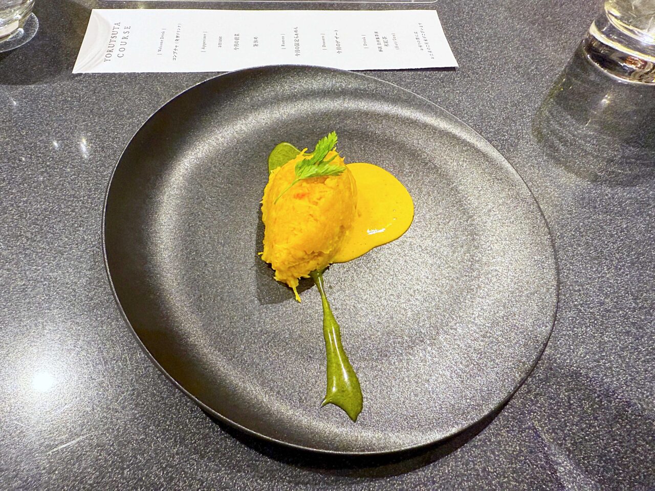 銀杏が添えられており、柚子味噌のエスプーマが掛かっています。