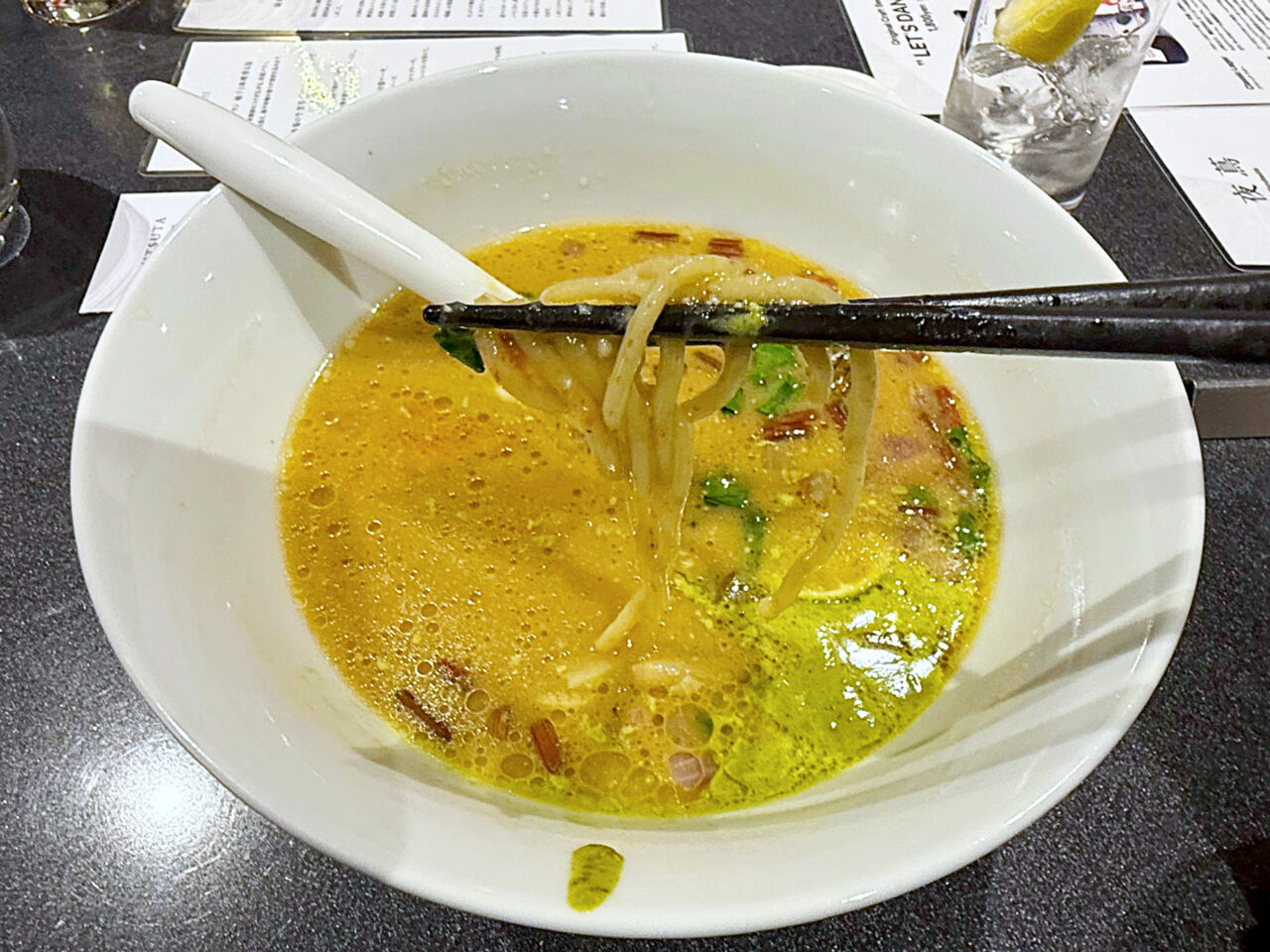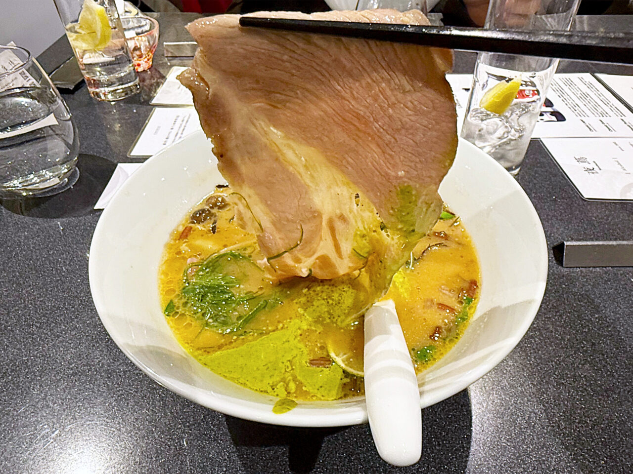 チャーシューやスイスチャードなどの具材の旨みも溶けています。