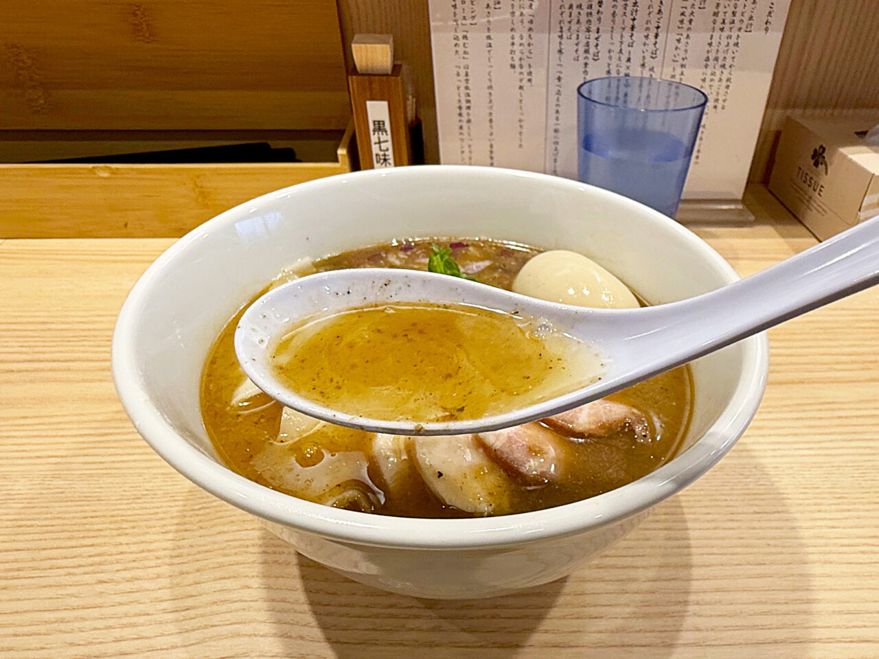 黒七味と言うと、「つじ田」さんや「銀座 朧月」さん、早稲田の「弐昇 早稲田」さんなど、つけ麺メインのお店に多い気がします。