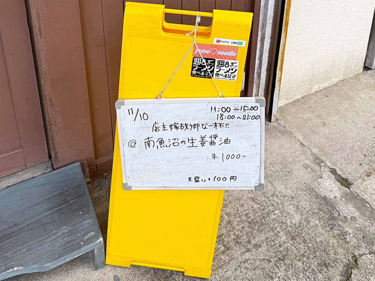 「店主嫁故郷な一杯!!」とあり、「南魚沼の生姜醤油」と書かれています。
