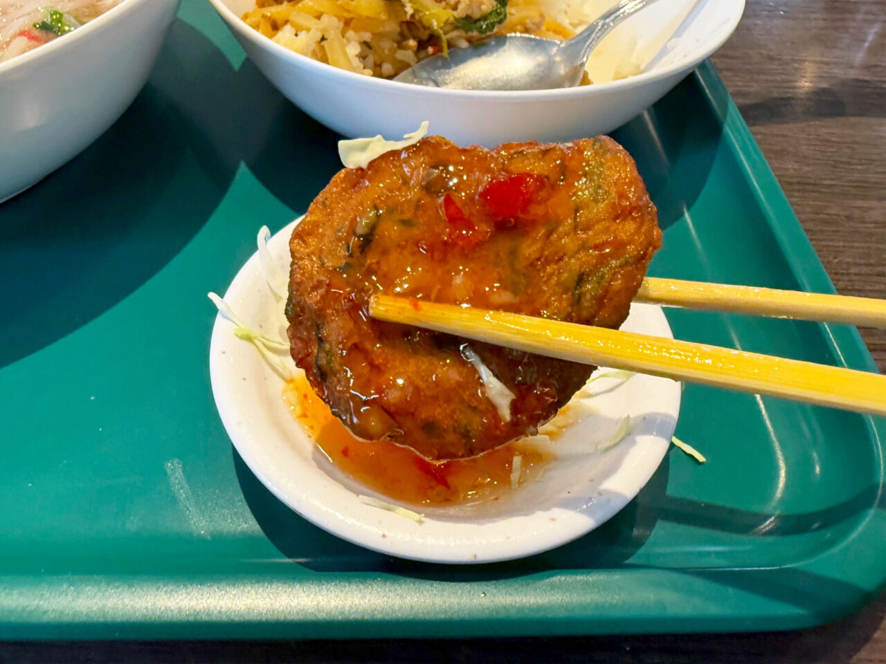トムヤムビーフンもガパオライスも美味しくて、タイ風さつま揚げもスイートチリソースがとても美味しいです。