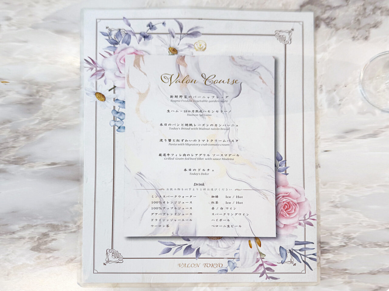 折角なので、偶にはランチコースにしてみようと思い「VALONランチコース」にしました。